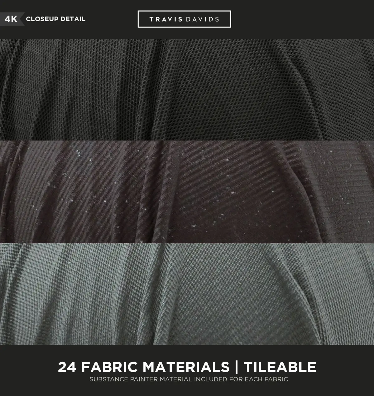 This pack includes 24 tileable fabric materials at 4K resolution. There is also a substance painter material provided for each fabric. All materials were scanned and enhanced with Substance Designer.
