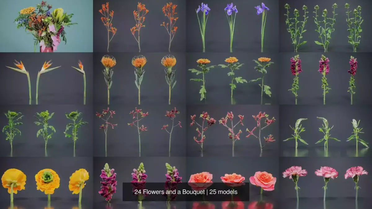 24 Flowers and a Bouquet 3D Model Collection