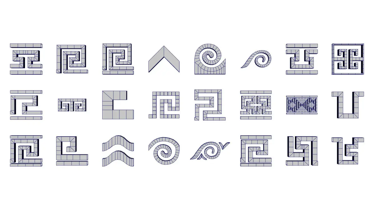 This package contains 24 Greek Meander Patterns that come in 5 different levels of subdivision.In every file, UVs are unique and overlapped so that they are easy to tile.