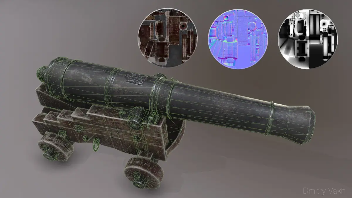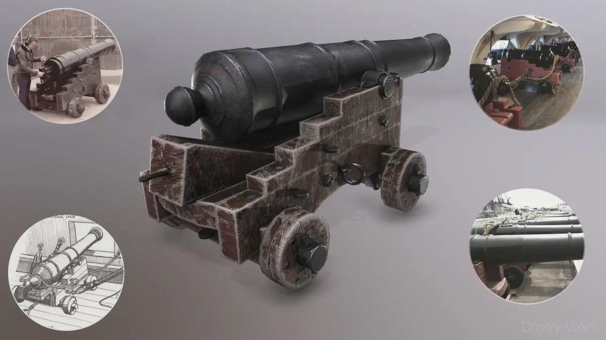 3D Low Poly model of a 24-pounder naval cannon with PBR textures included.Model is compatible in game engines.
