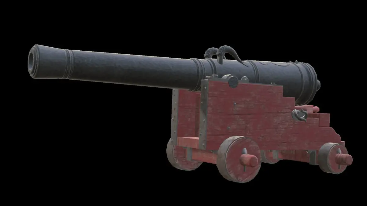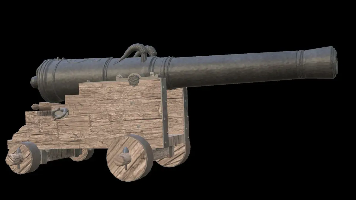 Game ready 24-pounder naval cannon from 17th-18th centuries, medium detail. Includes up to 5 LOD levels.