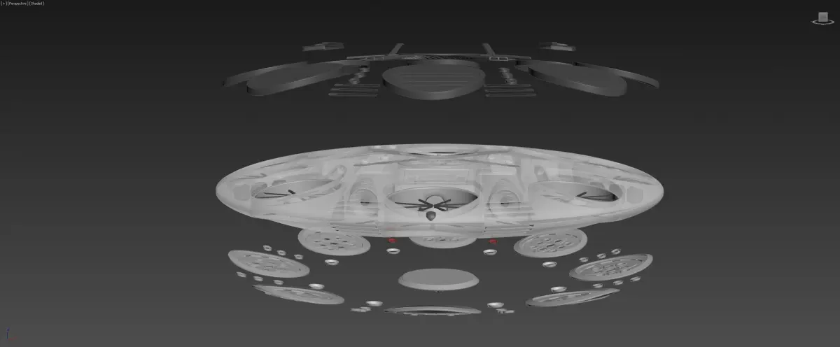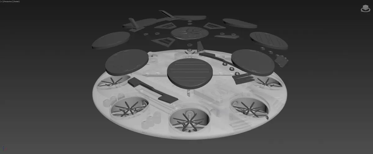 Multiple ultralight 3D printable layers, aerodynamic design, protecting the motors while operating from outside aerodynamic weather influences. the worlds first inverted helicopter jet drone thruster vehicle, all combined in a single vehicle. 2 counter spinning helicopter rotors, 16 drone rotors inverted, 2 main jets, 4 smaller jets. multiple thrusters on both sides allow the vehicle to do insane barrel rolls mid air trickery etc. this drone can be used for many different tasks, yet allows for doing it in style. 2 pilot seats, enormous batteries, photo voltaic outer hull (top & Bottom), sound dampening interior, open and closable air inlets, underwater, above water, and upper use cases. arrive at work in style. turn heads while commuting for sure. if you enjoyed this design, please help me grow ever closer to actual realization of this multi purpose air hovercraft. leave a like, thank you for reading, your patience and your continuing support. if you need any modifications let me know, its possible to fill the internal core sections with a gas like Helium, to have a controllable high altitude drone blimp as well. have fun.