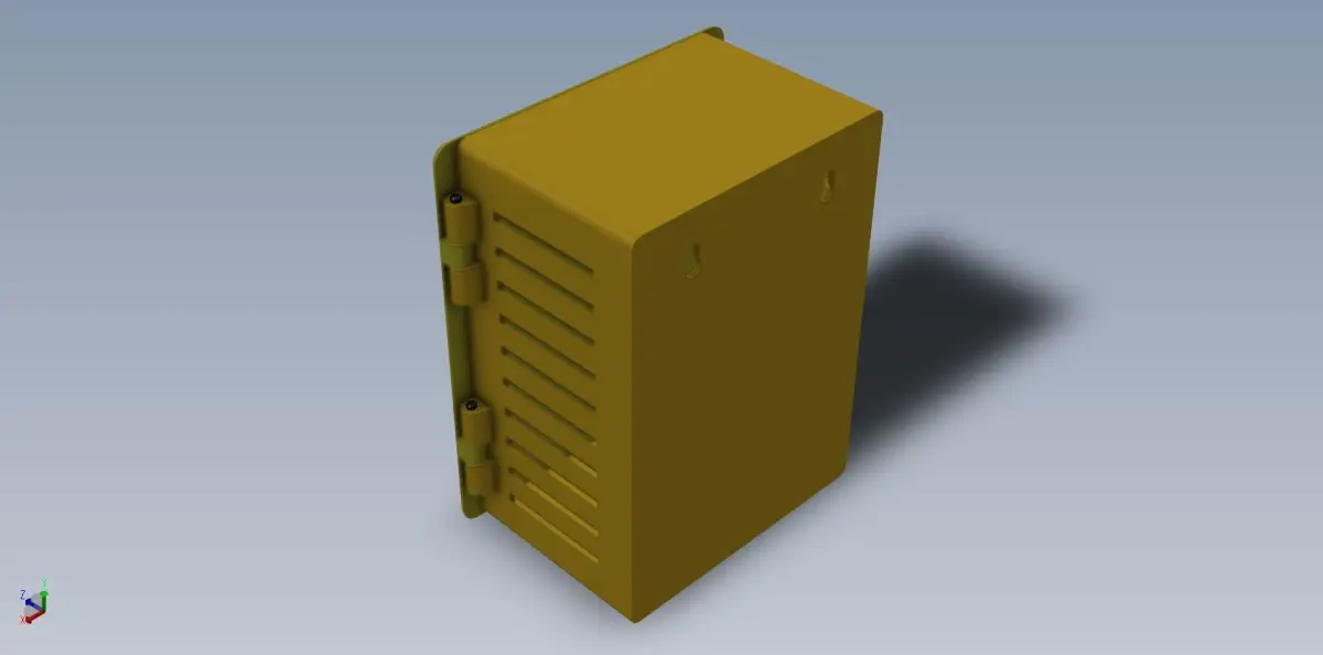 240mm X 200mm X 120mm Wall Mount Cabinet.9.5X 6.9 X 4.7Wall Mount Cabinet.The four 3/8X1/8" neodymium magnets in pictures are not included as part of the files.The neodymium magnets must be purchased separatly from McMaster-Carr.The McMaster-Carr part number for the neodymium magnets is 5862K104.The neodymium magnets hold the door closed.