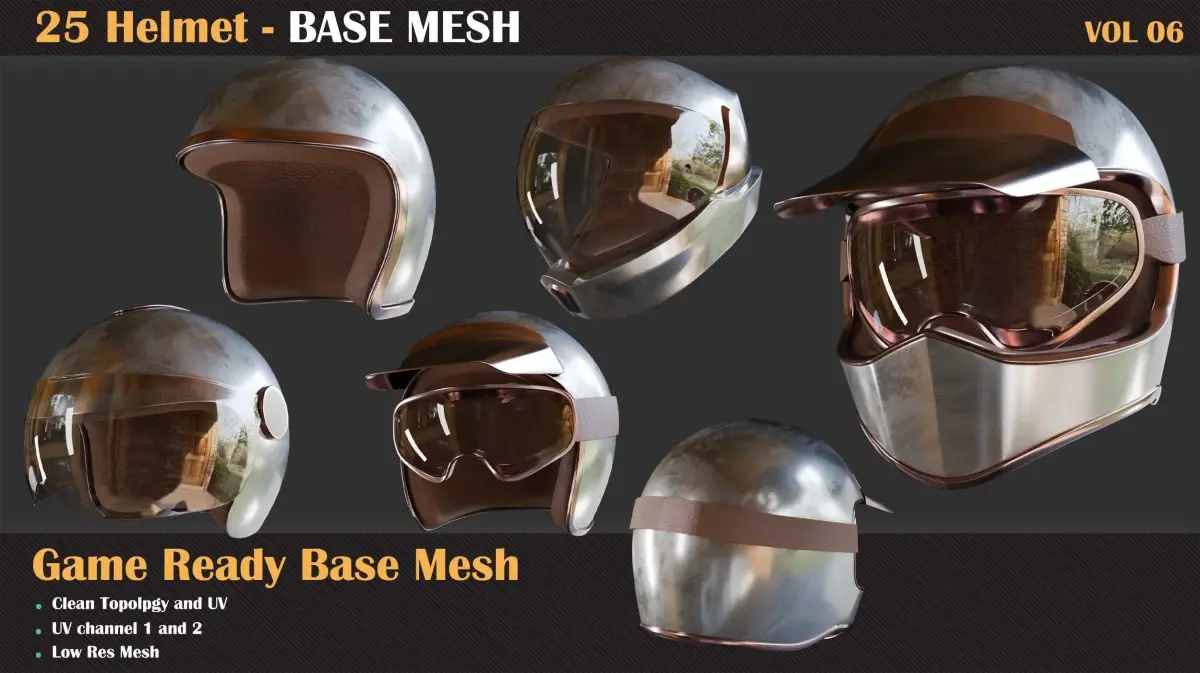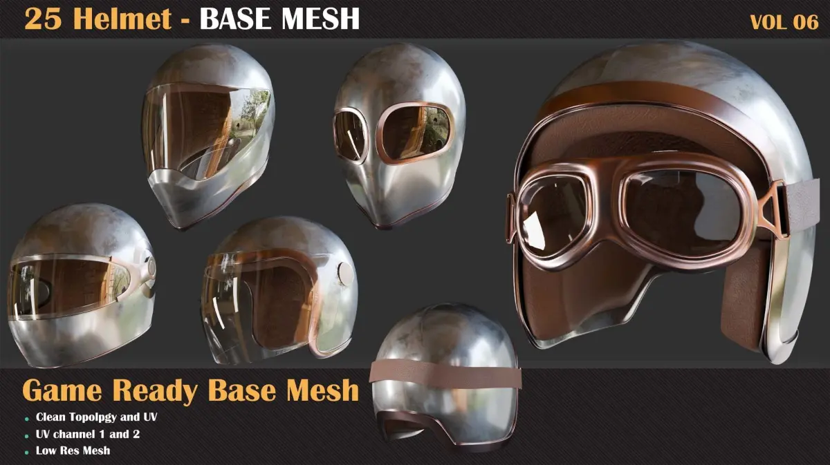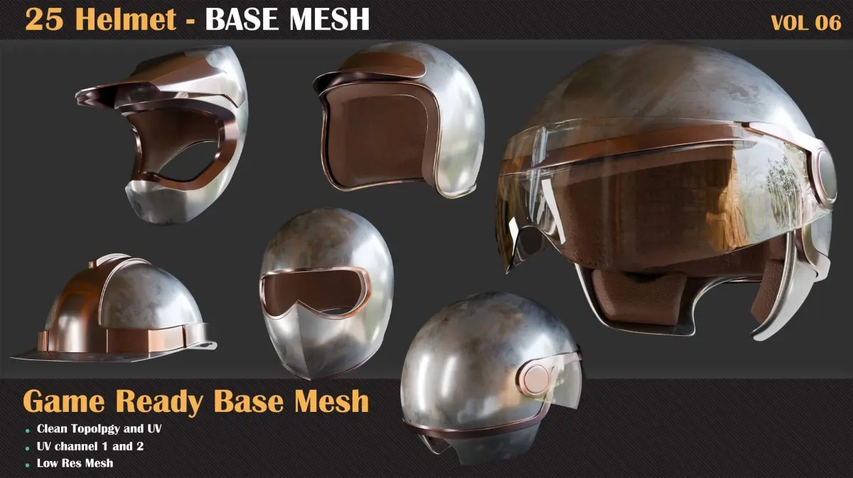 In each project, many items required by the artists consist of repetitive and similar items. To increase the speed of each artist in all tasks and parts of the project, we need a library of suitable models for various purposes, such as creating high-poly or using as a low-poly. In this package, we gather around twenty-five different types of Helmet for you. From Now, You can need your meet in the Helmet area with this library. All of them have proper UVs, which you can create your high-poly and bake it. All Model are under 10k tri and you can use them in game engines easily.After purchasing this package, you will get :