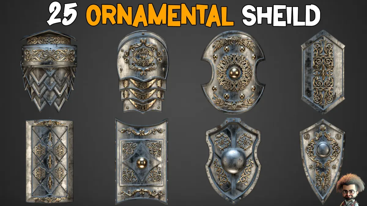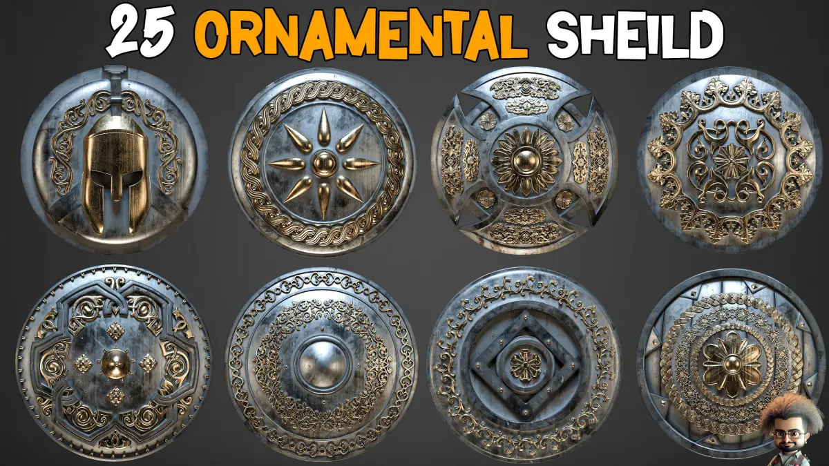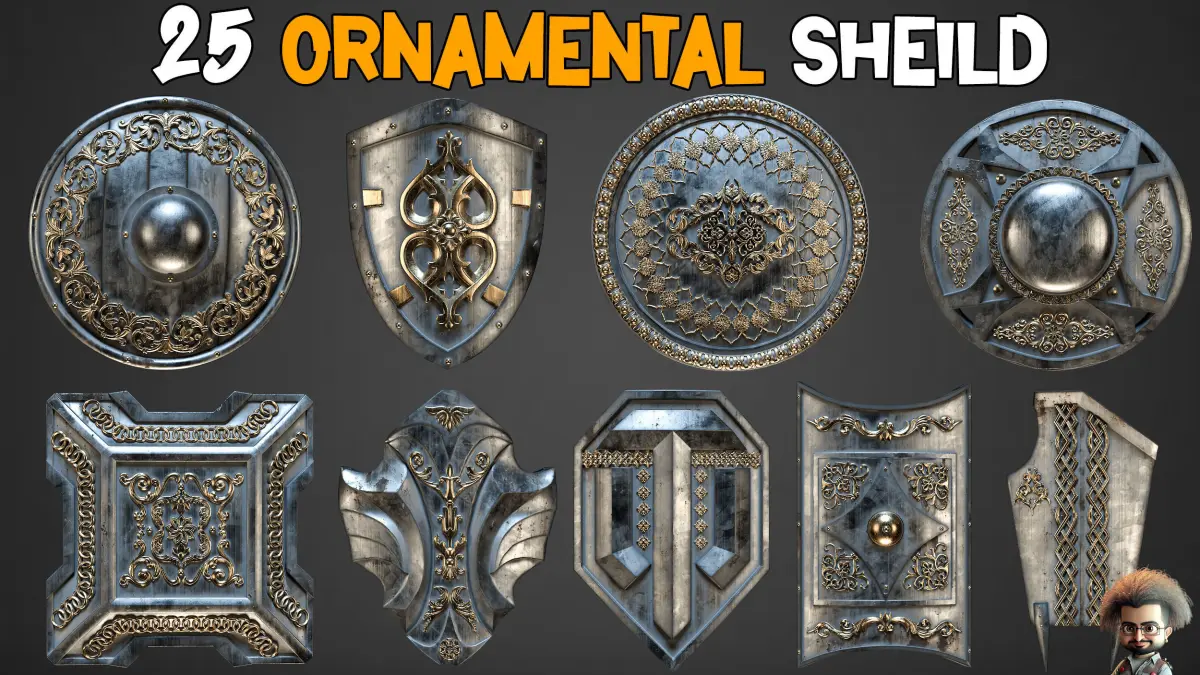25 Ornamental Shield + 3D models25 Shield included : OBJ , FBX , MAX(2018) ,PDF(Previews)UnwrappedLowPoly & HighPoly