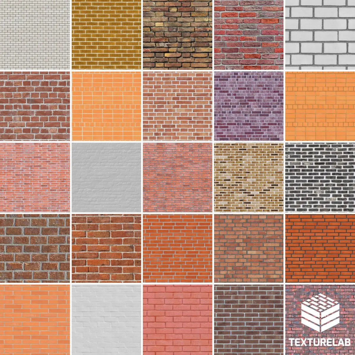 25 PBR, 4K, Seamless & tileable Brick Textures ( 4096 x 4096 Pixel / 300dpi / jpeg). Pack 02