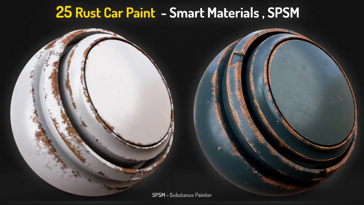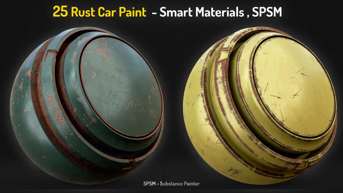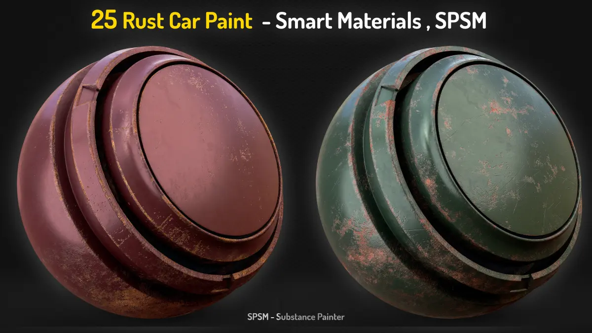 25 Smart Materials (spsm) - Easy to Change Base Colors Easy To Change Colors Made With Substance Painter Completely Customizable High Quality PNG Preview Compatible Substance 3D Painter, Version 9.1.1 or Higher