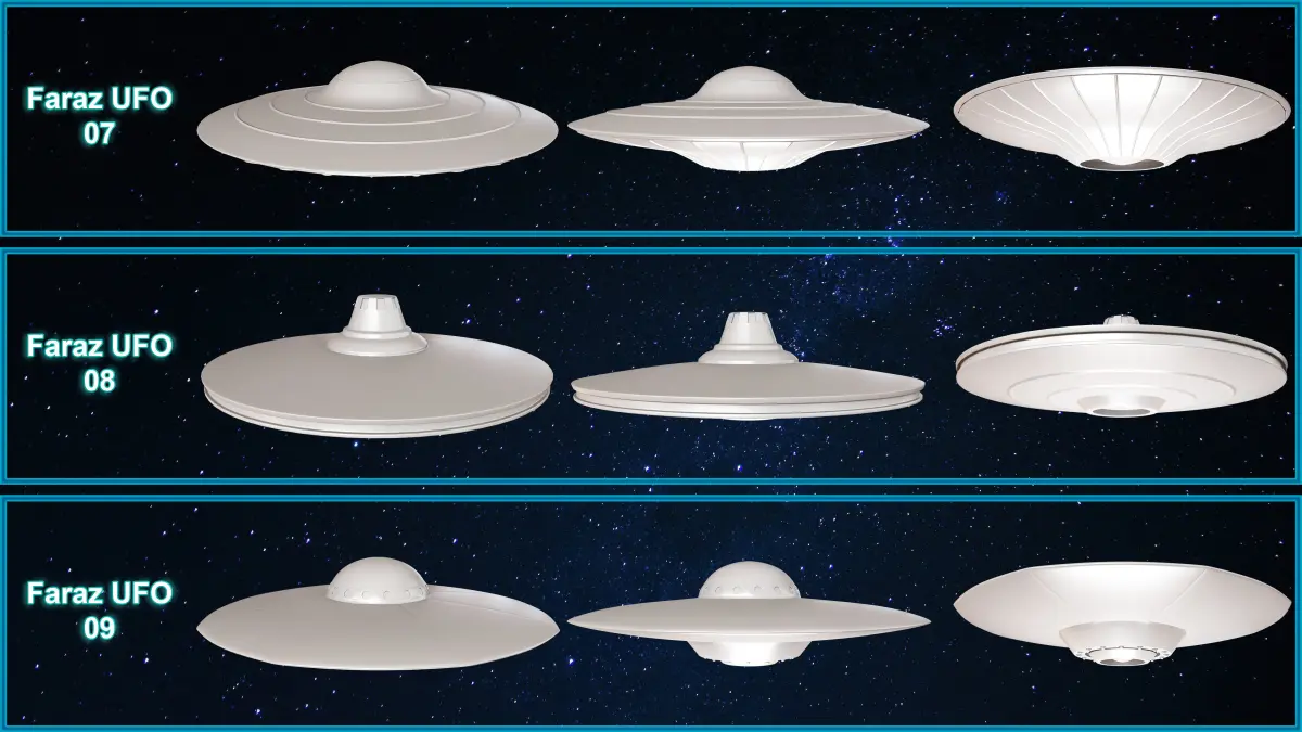 - This product includes 25 3D model Sci-Fi Flying saucer(UFO)