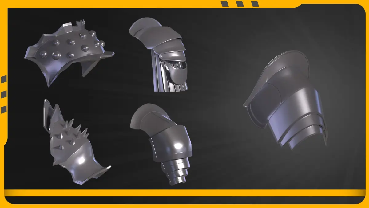 If you are working on 3d models you might have experience of modeling Base meshes so you can give them More detail and bake them on it or you can give them materials In this library I provide 25 Shoulders base meshes That they have pretty clean topology are all of them has less than 10k poly with proper UVs so you can create your high poly and bake on it this can speed up your projects and skip base mesh modeling