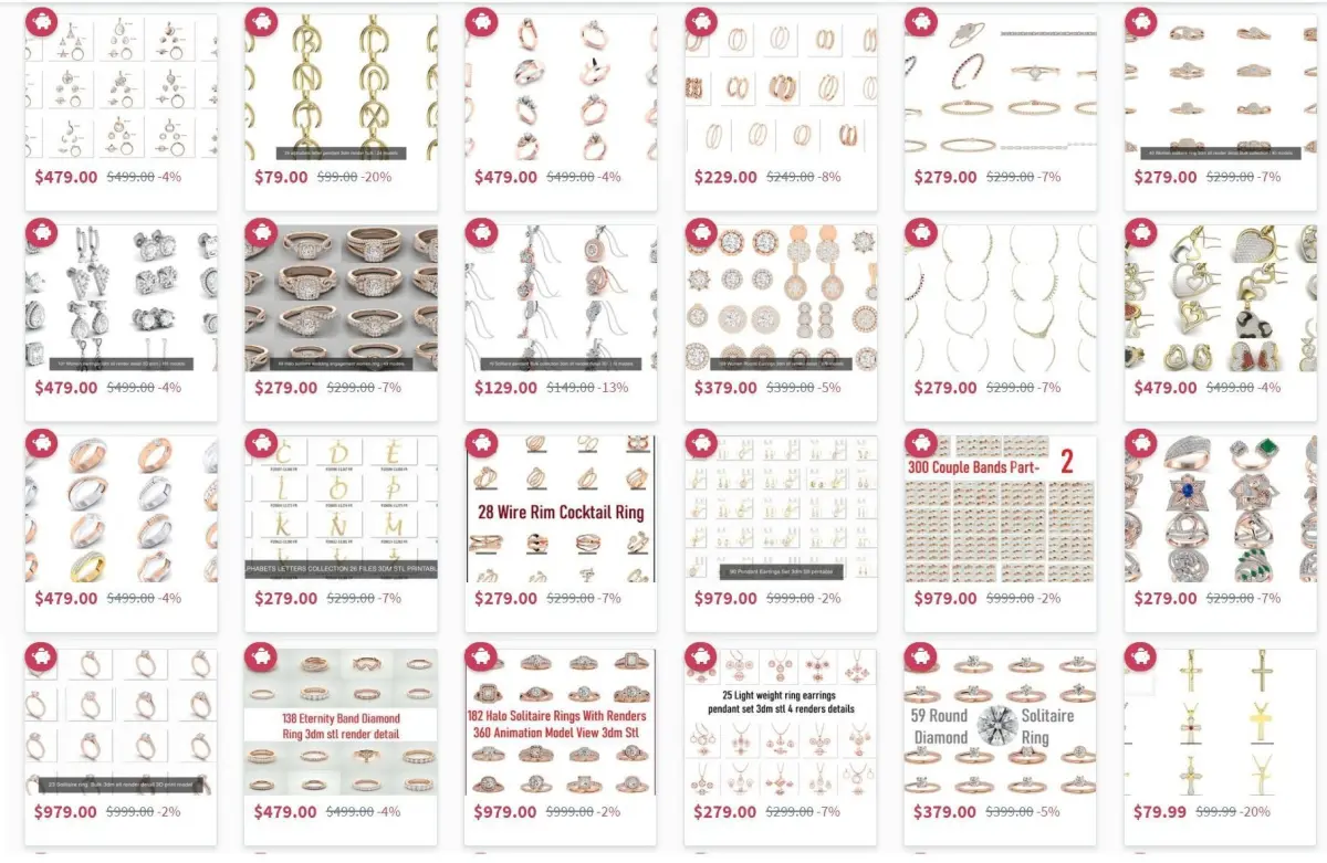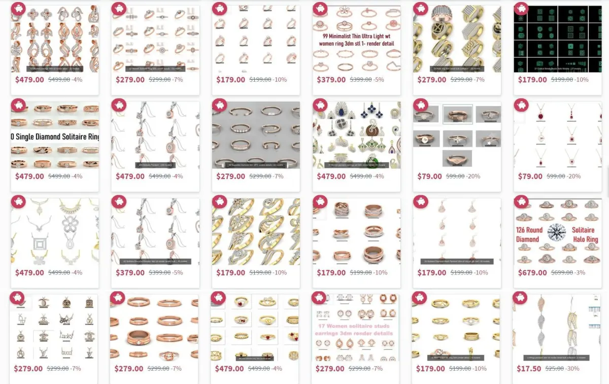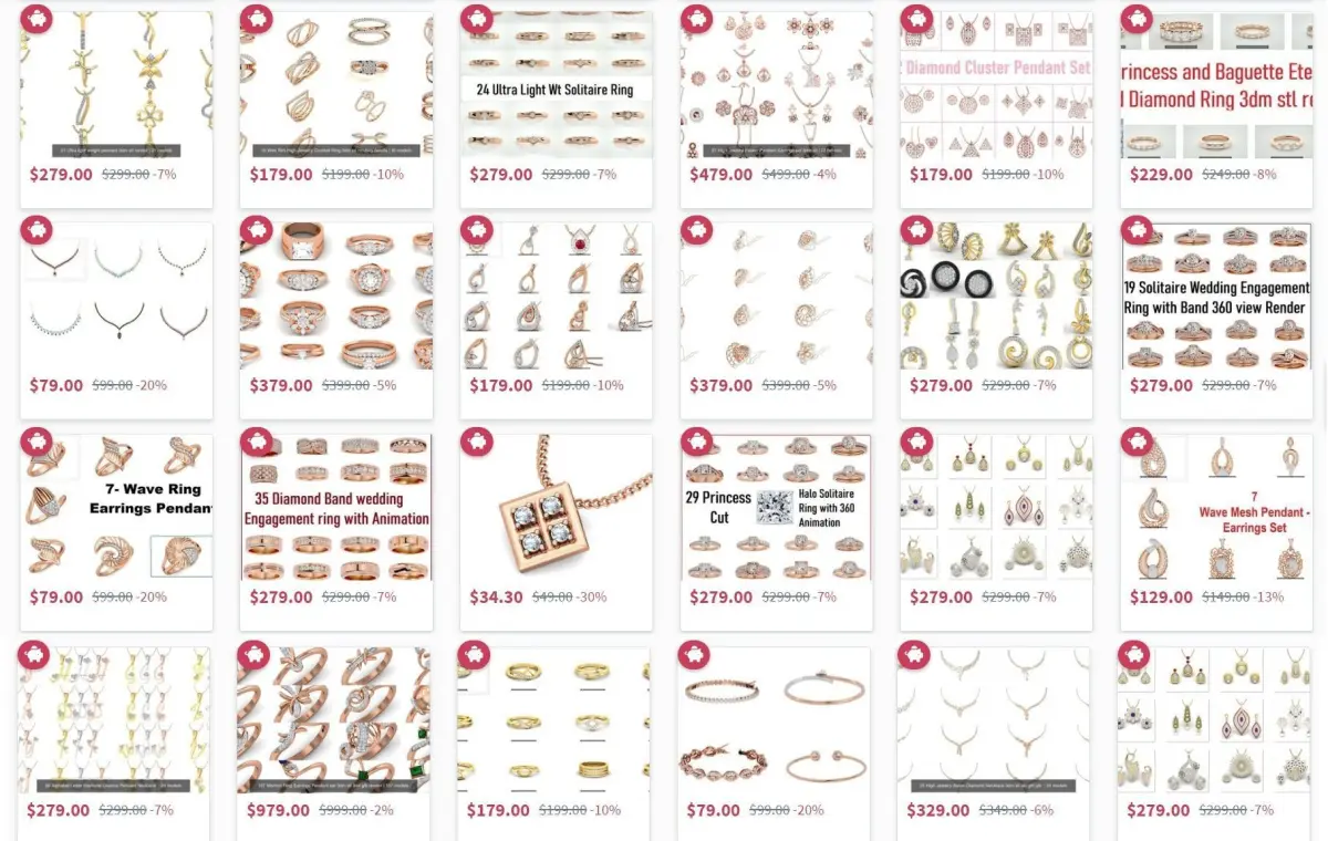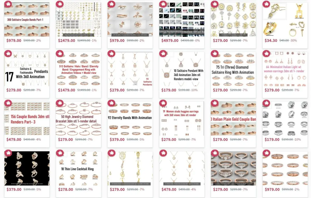 25000 Jewelry Models with Renders in 3 colors with 3d models and details + Free Bonus (Complimentary) 3dm and jcd models pack for future development.
