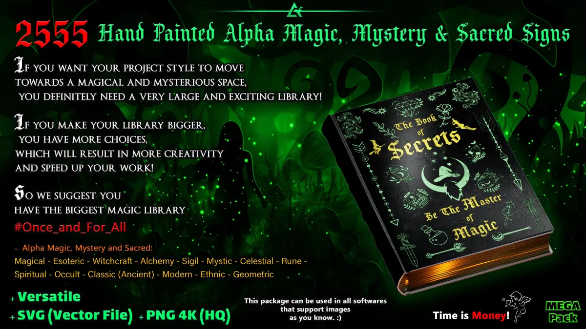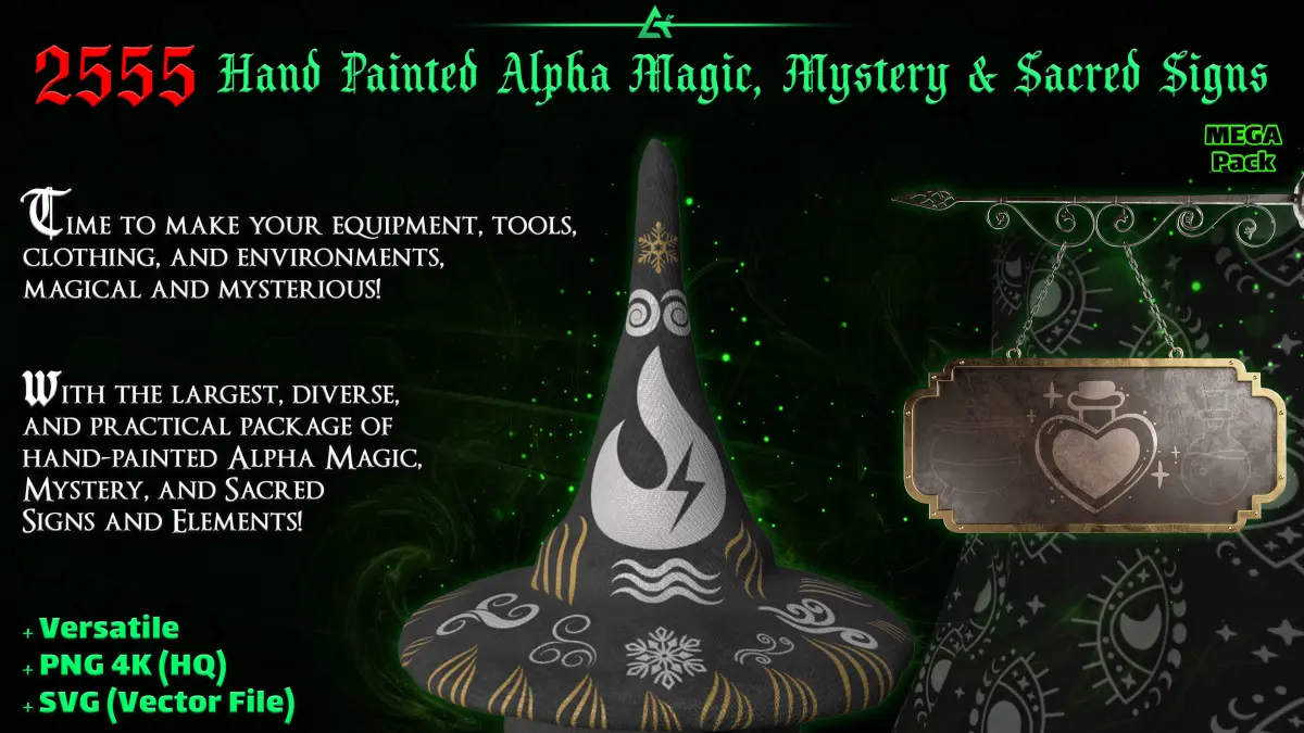 - 2555 Hand Painted Alpha Magic, Mystery & Sacred Signs and Elements (50 alphas are free part) that contains: