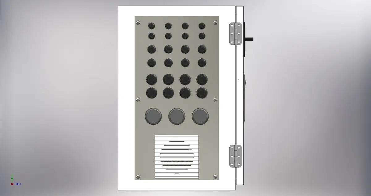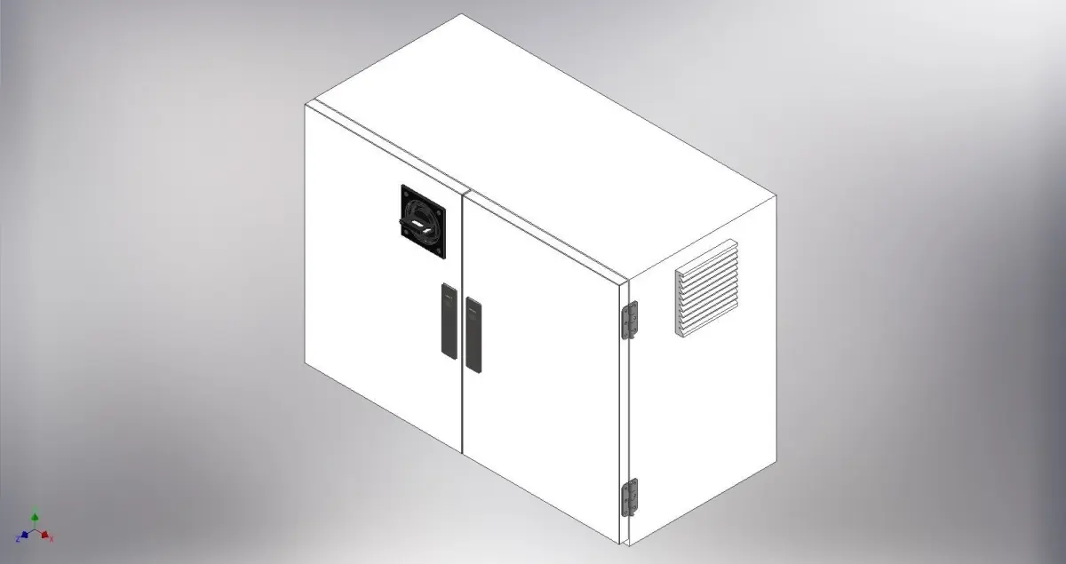 Control panel with equipment for control servo motor 1 Kw 4 unit by PLC FX5UC series.