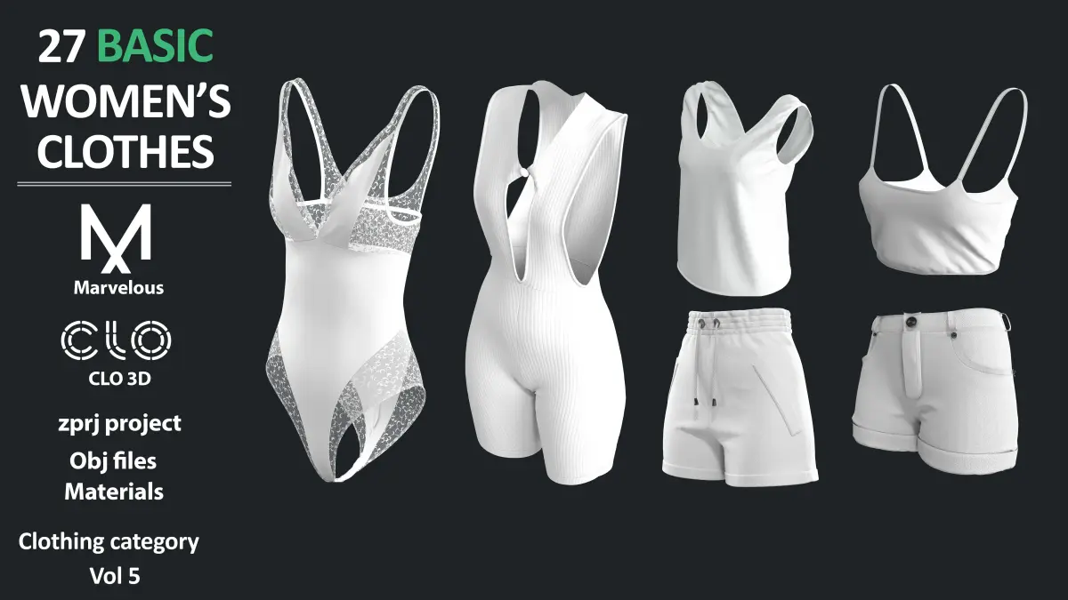 27 Basic women clothes Marvelous Designer zprj obj fbx