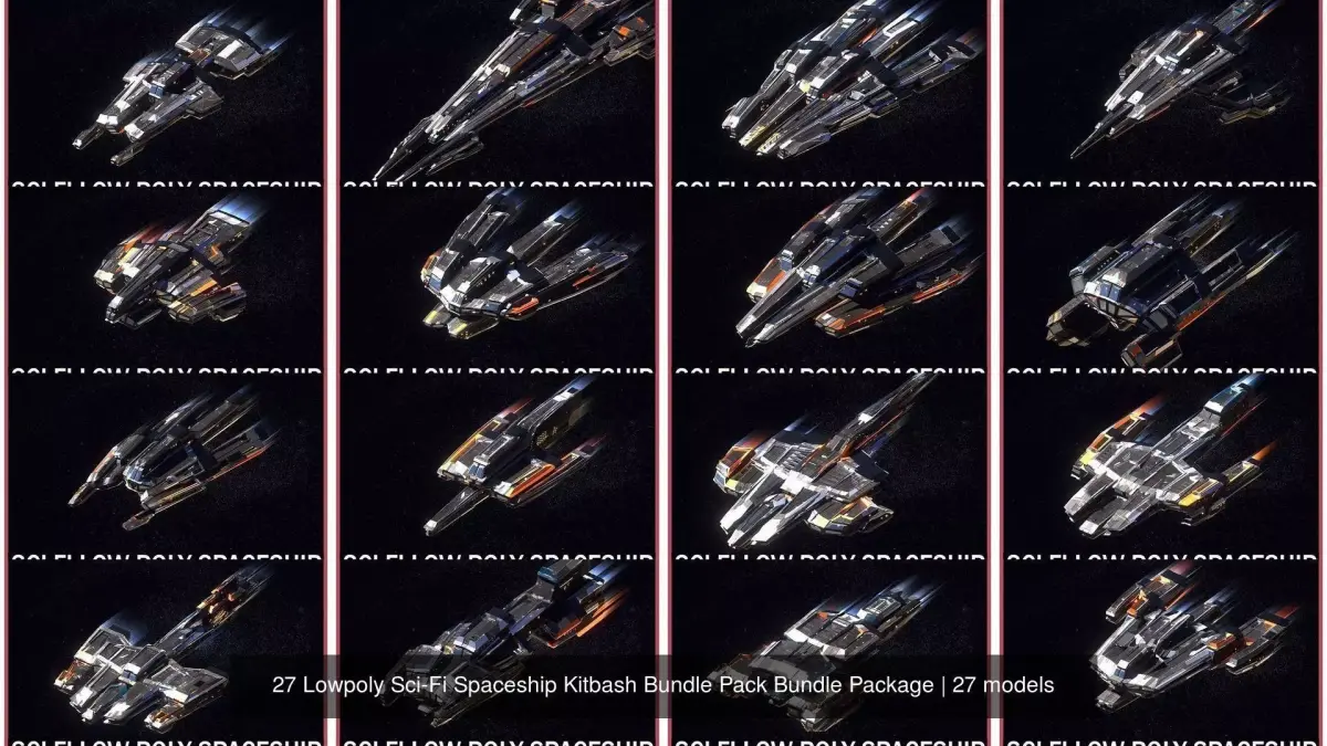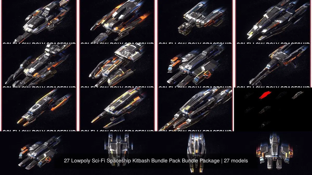 +27 Lowpoly Sci-Fi Spaceship Kitbash Bundle Pack Bundle Package
