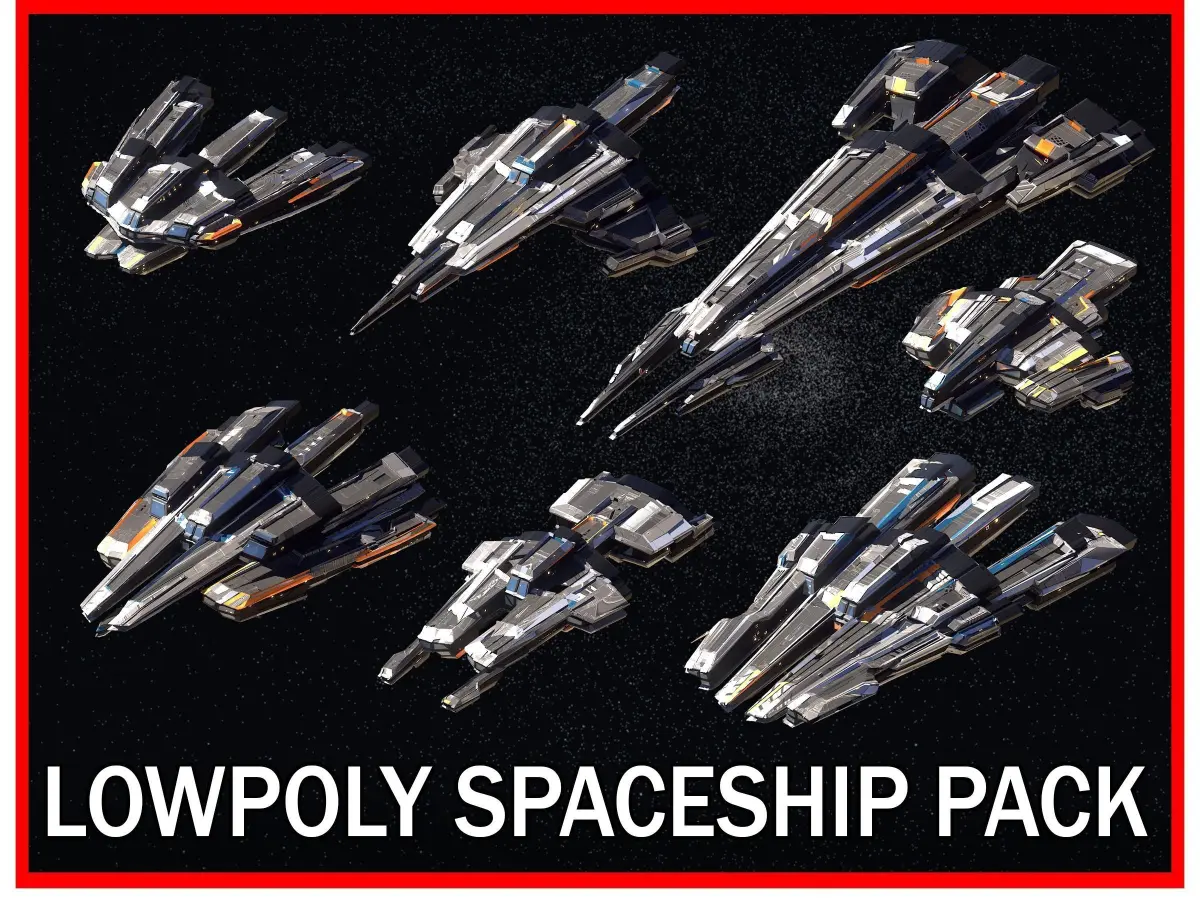 +27 Lowpoly Sci-Fi Spaceship Kitbash Bundle Pack Bundle Package