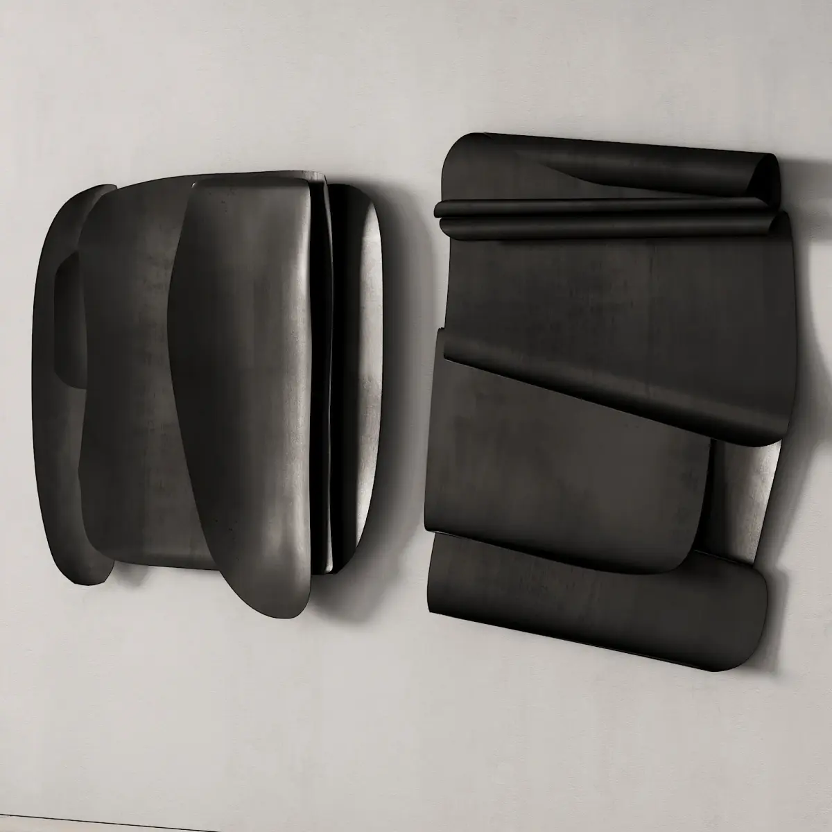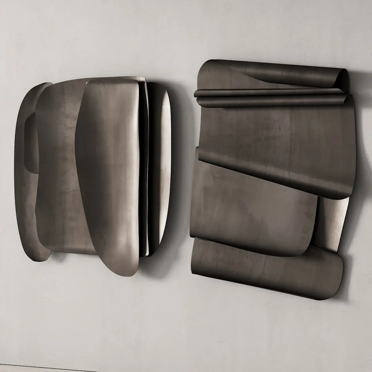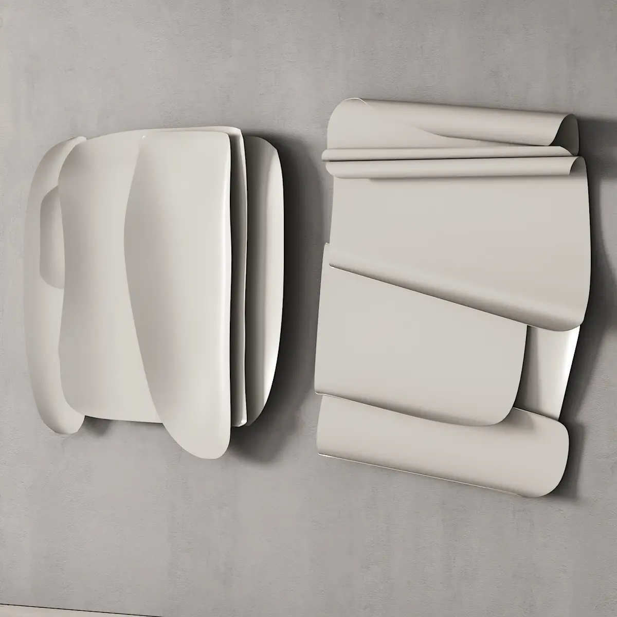 3d model: wall art object / wall sculpture / artwork / wall art by Yyo Hai. The scene features two art objects in four different materials.