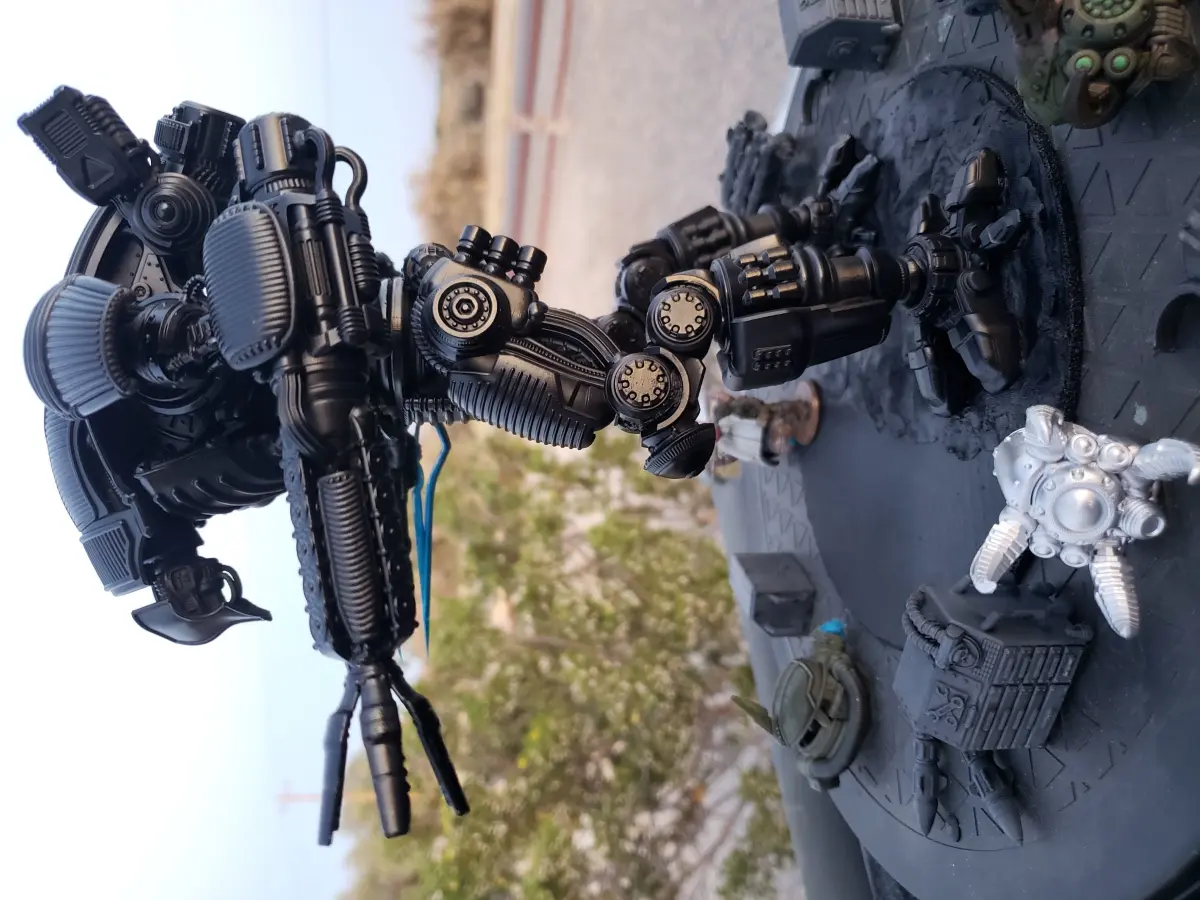 Dark, sinister, and optimized for crippling targets even larger than itself, the Sicario Assassination Mech stalks the battlefield, an impossibly huge visage of mechanical death in stealthed armor.