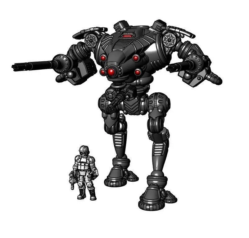 Included in the zipped folder...1 main hull1 set of hips1 reactor bit that attaches to the rear of the hull.2 sets of legs fused at different angles, right and left, if you wish to make custom poses3 sets of pre-posed legs and hips (recommended for your first prints)2 types of feet (standing and advancing) that are universal, and can be either right or left. Print twice or mix and match, depending on pose.2 heavy autocannonsUpper arms that are either flat for 8mm magnets or have a ball that matches the weapon's socket.1 Ball Pintle for Auxiliary Weapons3 Auxiliary Weapons (gatling, molten matter projector, or missiles)8mm Plugs, in case you don't want to magnetize2 100mm bases (plain and textured)1 Shoulder Armor, Universal, that is both left and rightStanding Waldo (based and unbased), my 28mm reference figure sculpted by Patrick Keith of Bombshell Minis