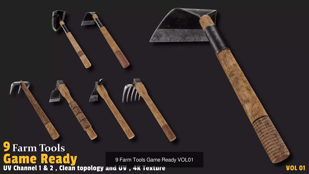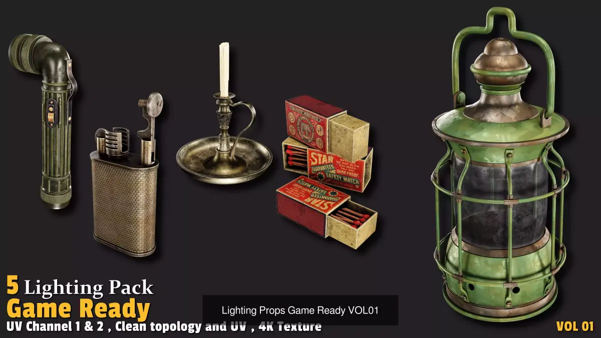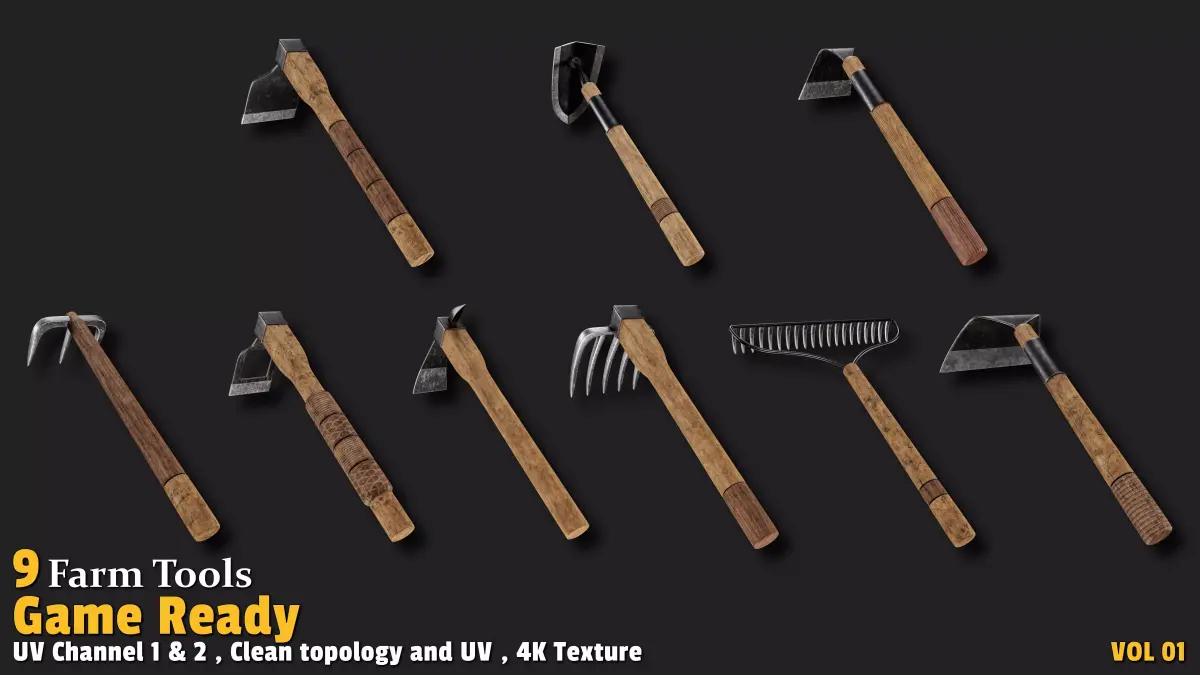 10 Lock & Key – ancient & magical locks + keys9 Farm Tools – pitchfork, sickle, hoe, pickaxe, etc.5 Tools – knife, saw, wrench, screwdriver, hammer5 Lighting Props – lantern, candlestick, matchbox, handheld lampAll Mid-Poly (500–11k), 4K textures included, perfect for Unreal/Unity/Blender – zero extra work!