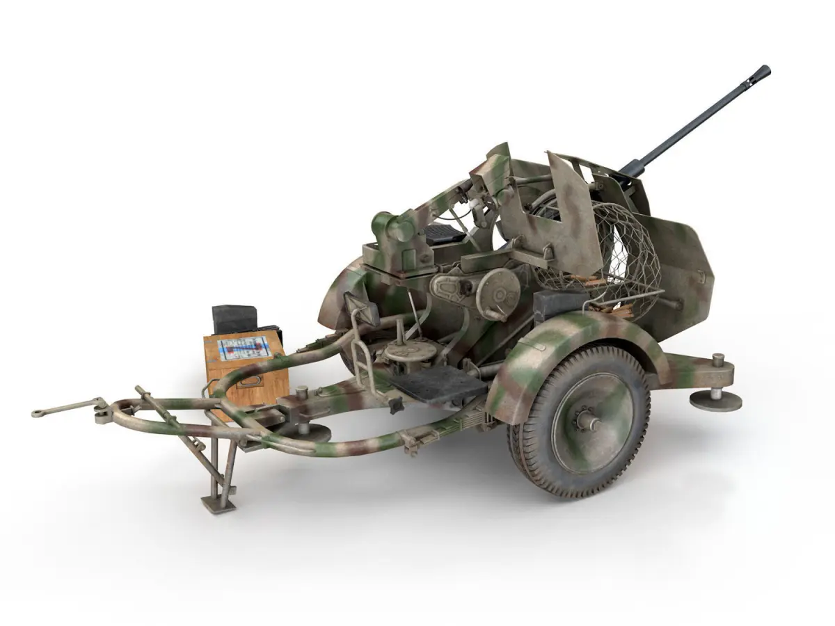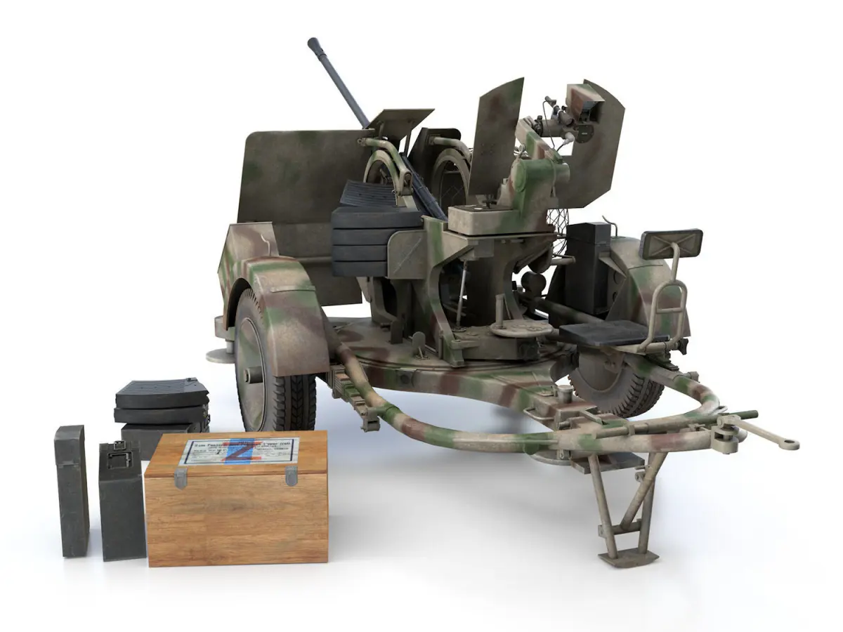 The 2cm Flak 38 was a German anti-aircraft gun used in World War II. Originally produced for the Kriegsmarine in 1938, it was accepted by the Luftwaffe and ground forces in 1940 and remained in production until 1945.