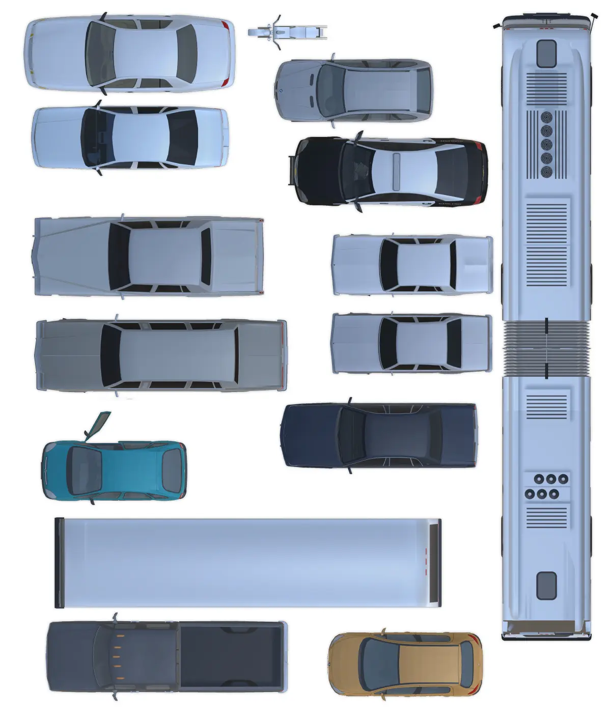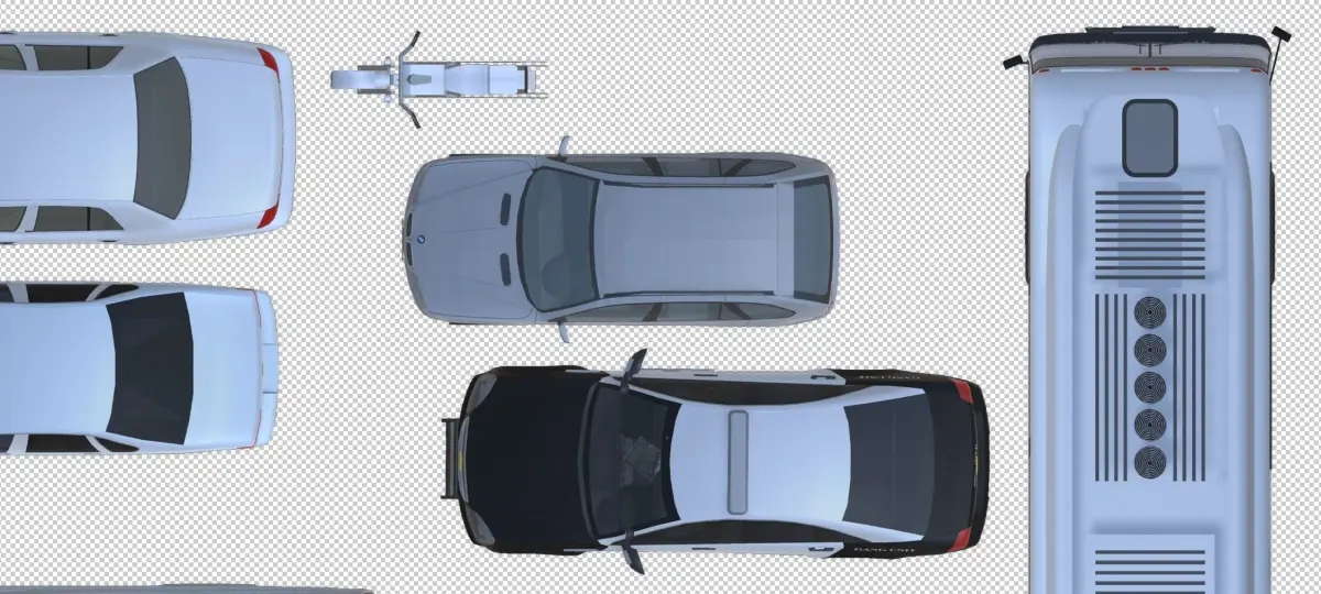 2d cars furniture floorplan top view PSD 3D model render realistic 3D model