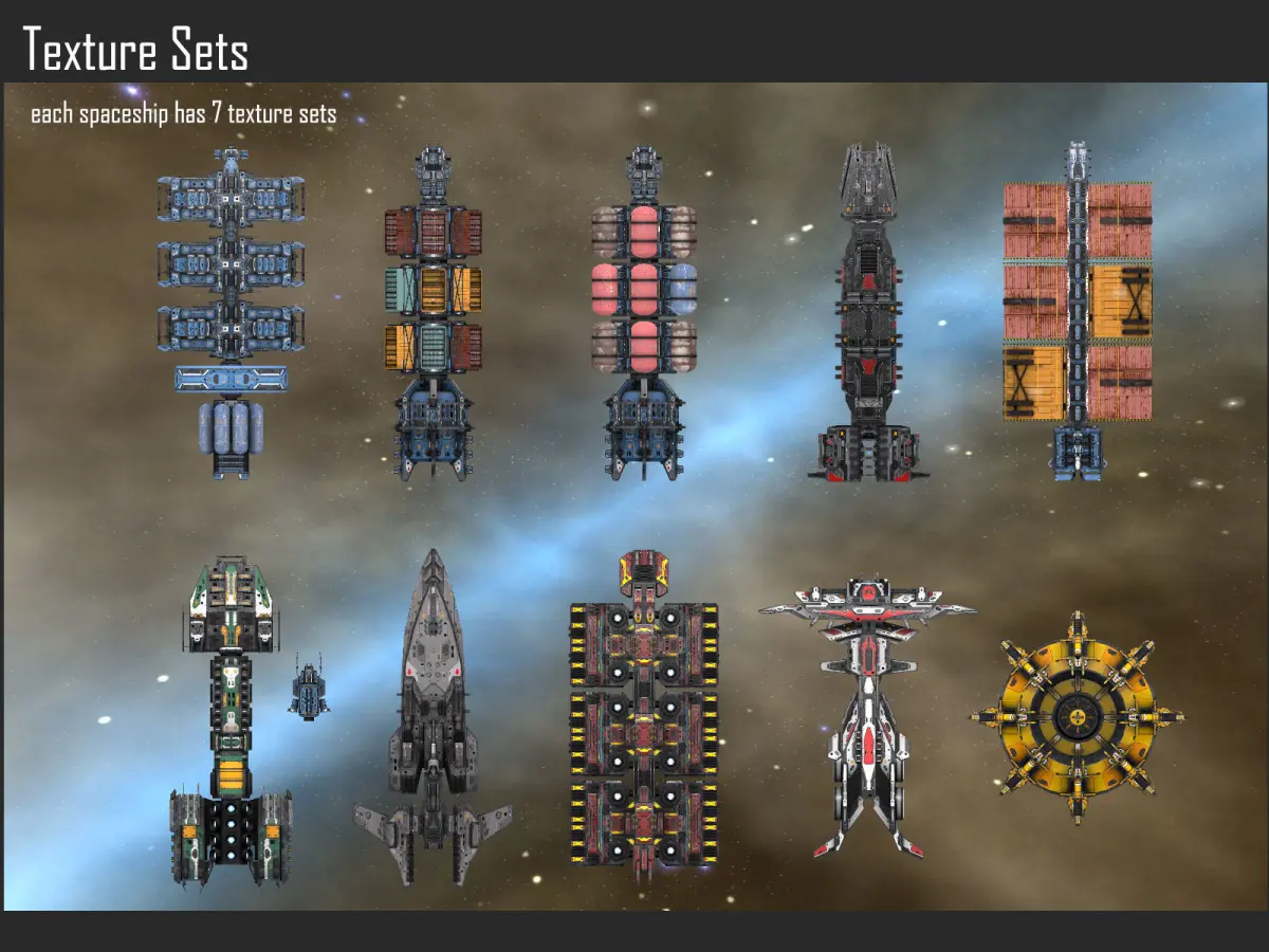 - Texture sizes are 4096 (ship texture atlas), 1024 (weapons) and 512 (missiles)