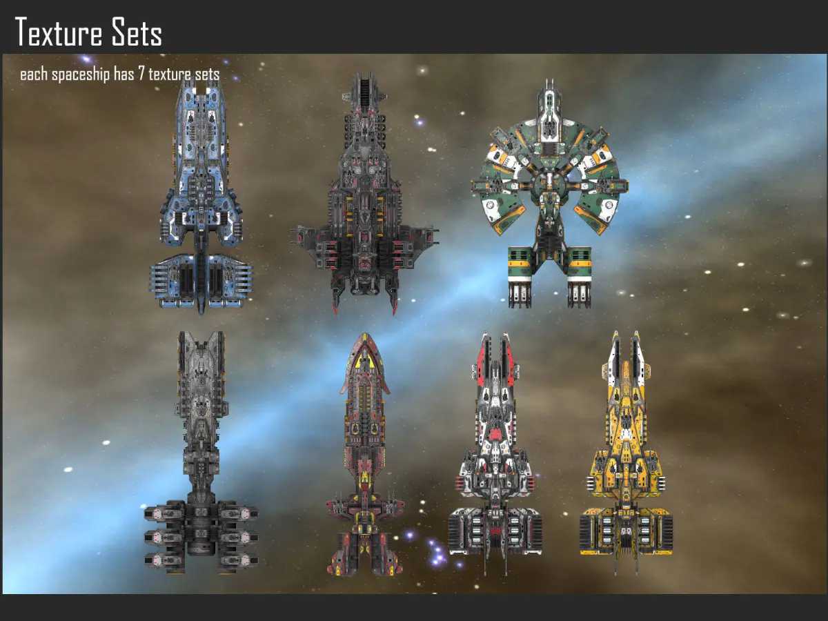 - Texture sizes are 4096 (ship texture atlas), 1024 (weapons) and 512 (missiles)