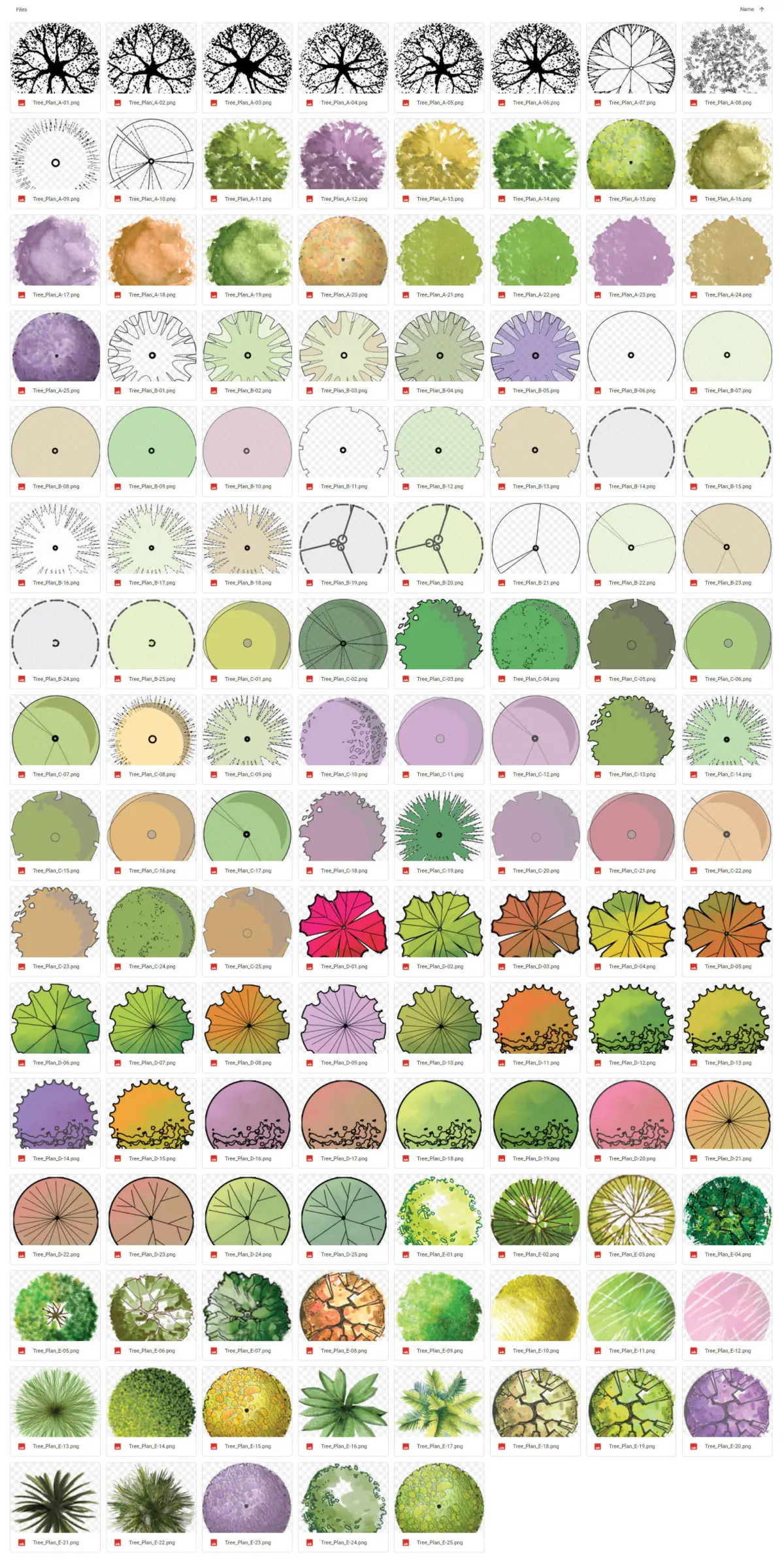 2D Tree Furniture for Landscape125 PNG Hand Painted Trees .