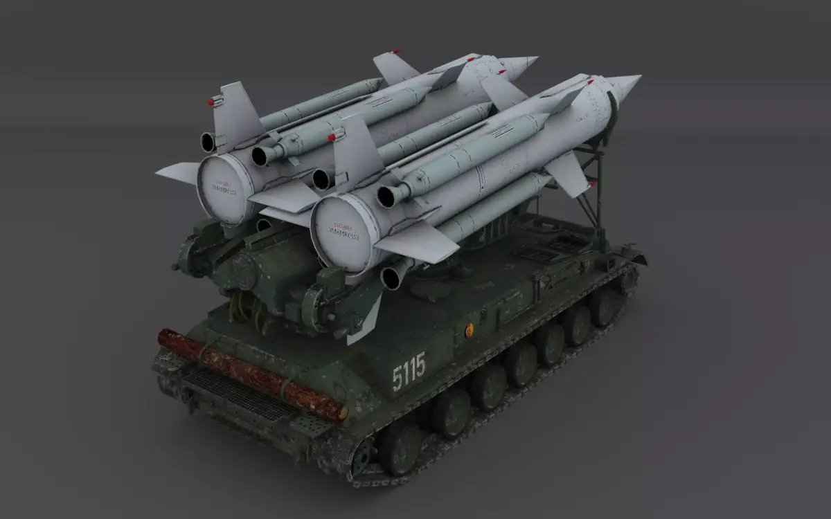 Every part — from the tracked chassis to the twin missile launchers — has been carefully modeled with authentic detailing, while maintaining a manageable 14K polygon count for optimal performance.