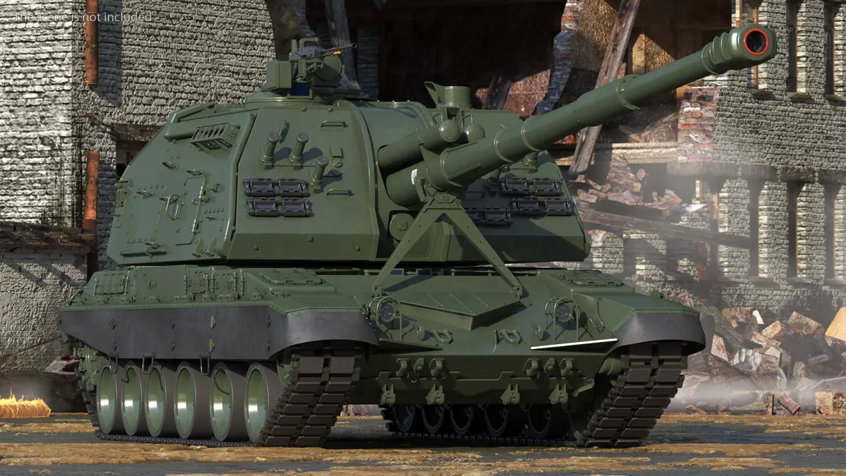 2S19 Msta Green is a 3d model of howitzer designed for deployment either as an unarmored towed gun, or to be fitted in armored self-propelled artillery mountings.