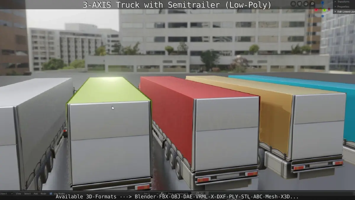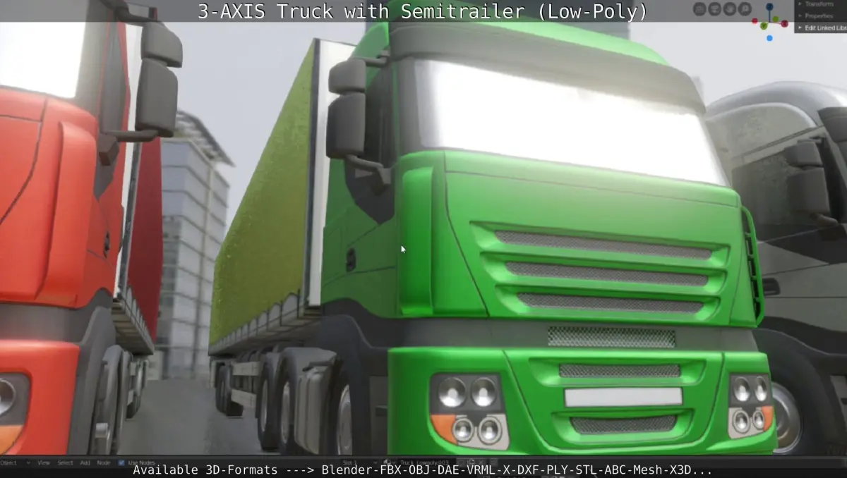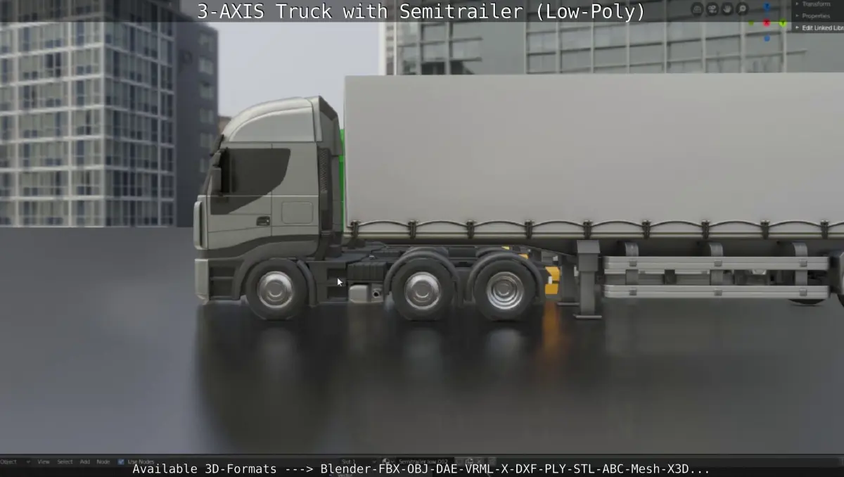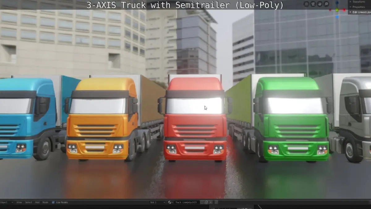3-AXIS Truck with Semitrailer Low-Poly Version.