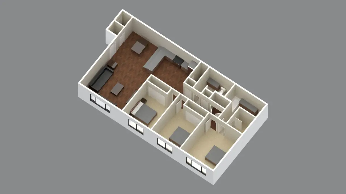 3 Bedroom 2 bathroom apartment unit model modern architectural Low-poly 3D model