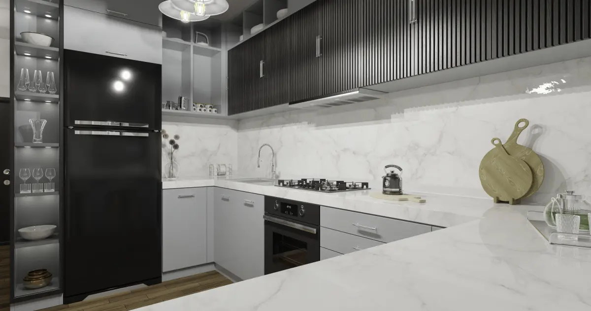 A fully furnished/equipped apartment with 3 bedrooms, 1 kitchen, 1 living room, 1 bathroom and 2 additional small rooms (office/laundry room).