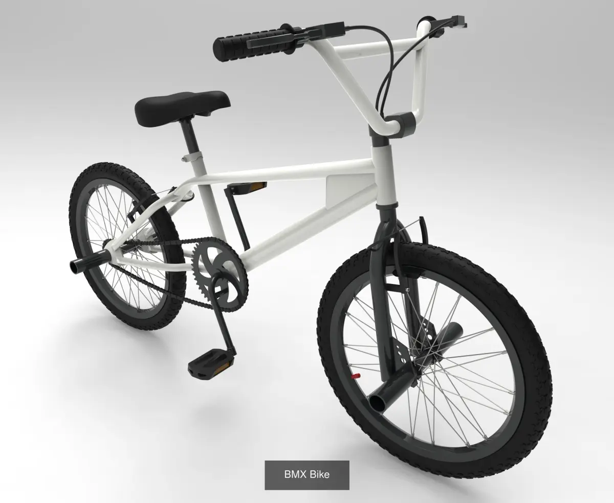 This is a tiny collection of 3 BMX Bikes, all made with the solid surface and parametric design technique. The three of them share the main dimensions and proportions, but their shapes and looks are different. They are made in real life scale and size. However the default measurement units used for modeling were mm, so you might need to scale them down when you import them into your scene.