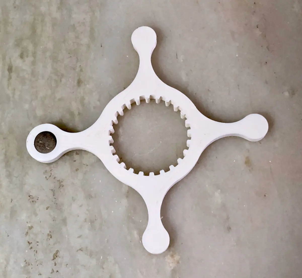 3D printed bottle cap opener with a magnet. It fits up to 11mm diameter, 3mm height magnet.Printed with PLA. Set the slicer to pause at 3.8mm to introduce the magnet. And then continue. Do NOT use supports!!
