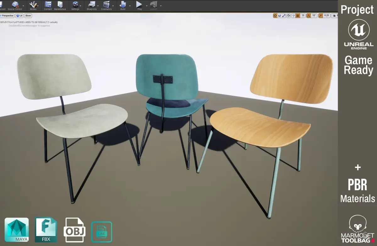 3 Different Retro Vintage School Chairs Detailed PBR made base on original example in real scale ready to use.