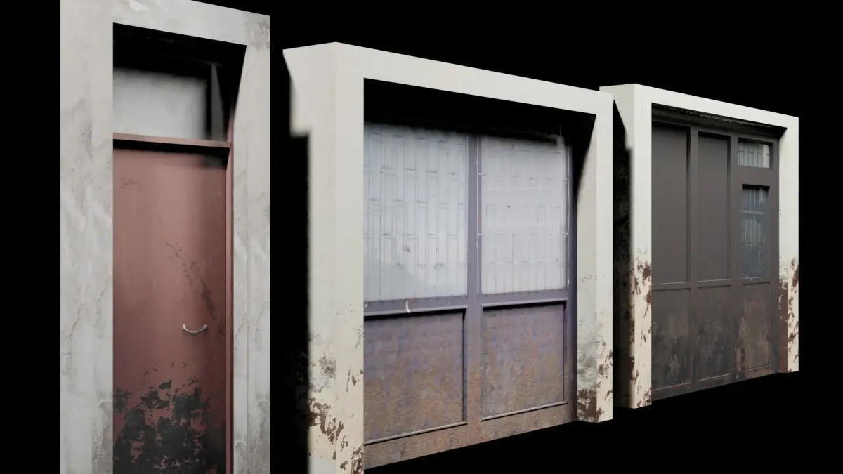 4096 3 doors with height, ao, diffuse, roughness, metallic, normal