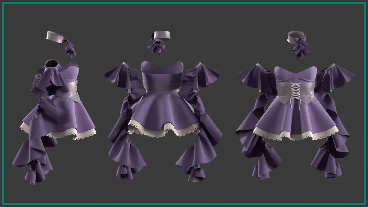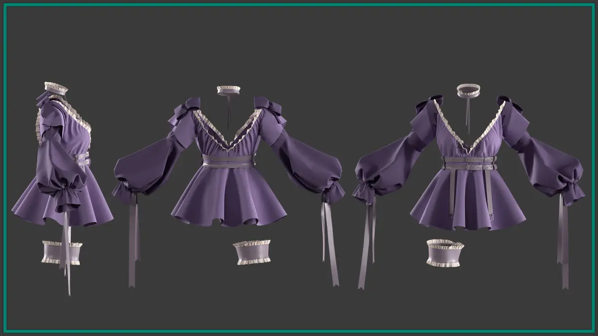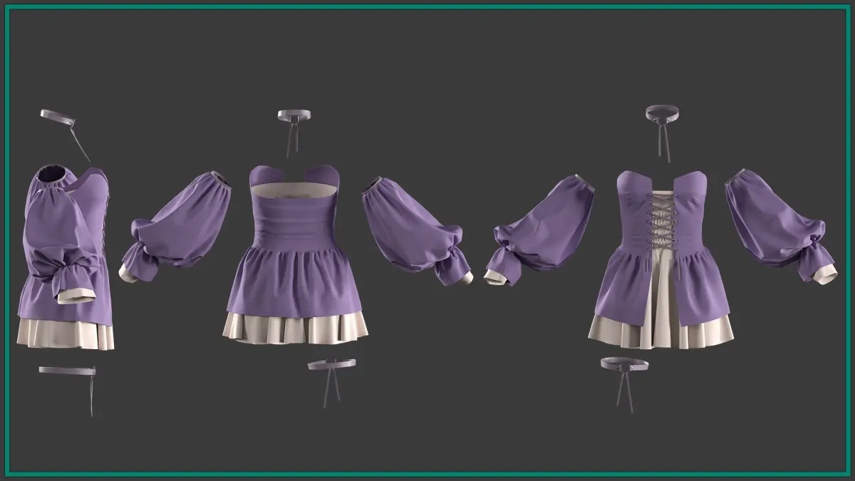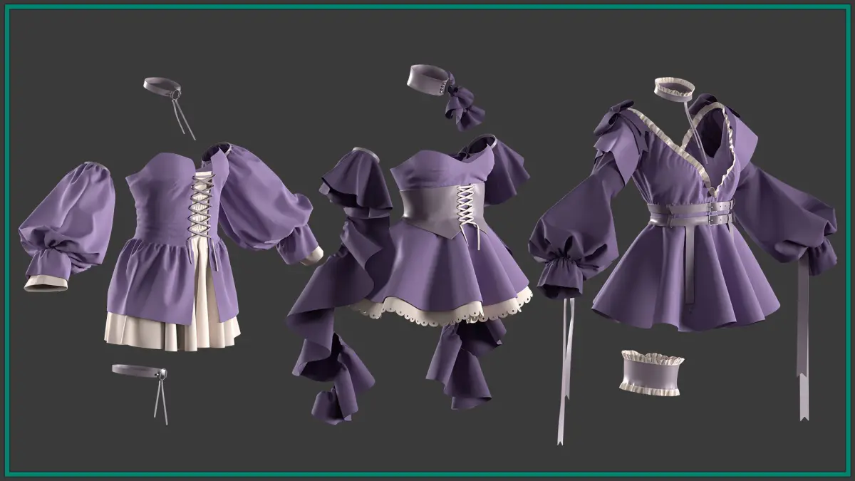 This product contains 3 Female Anime Clothes and 3 Files. In each Files, there are:
