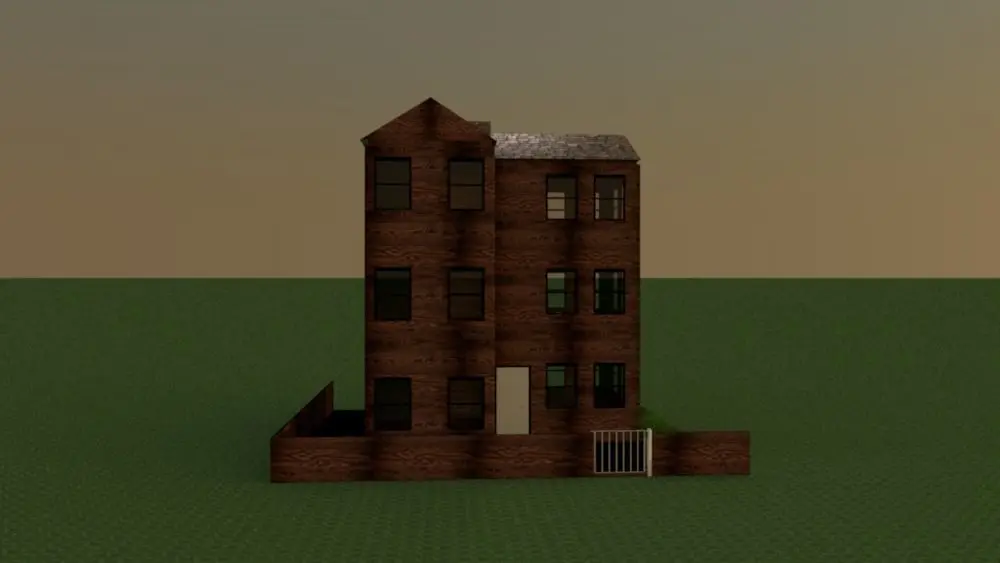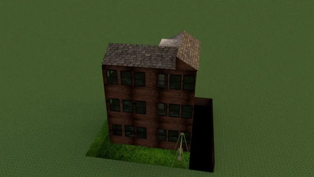 three floors tall old wooden building. with a beautiful top, texture includes the file. black flam door and windows. three formats. obj, fdx and dae. it's good for old timing game and movies.