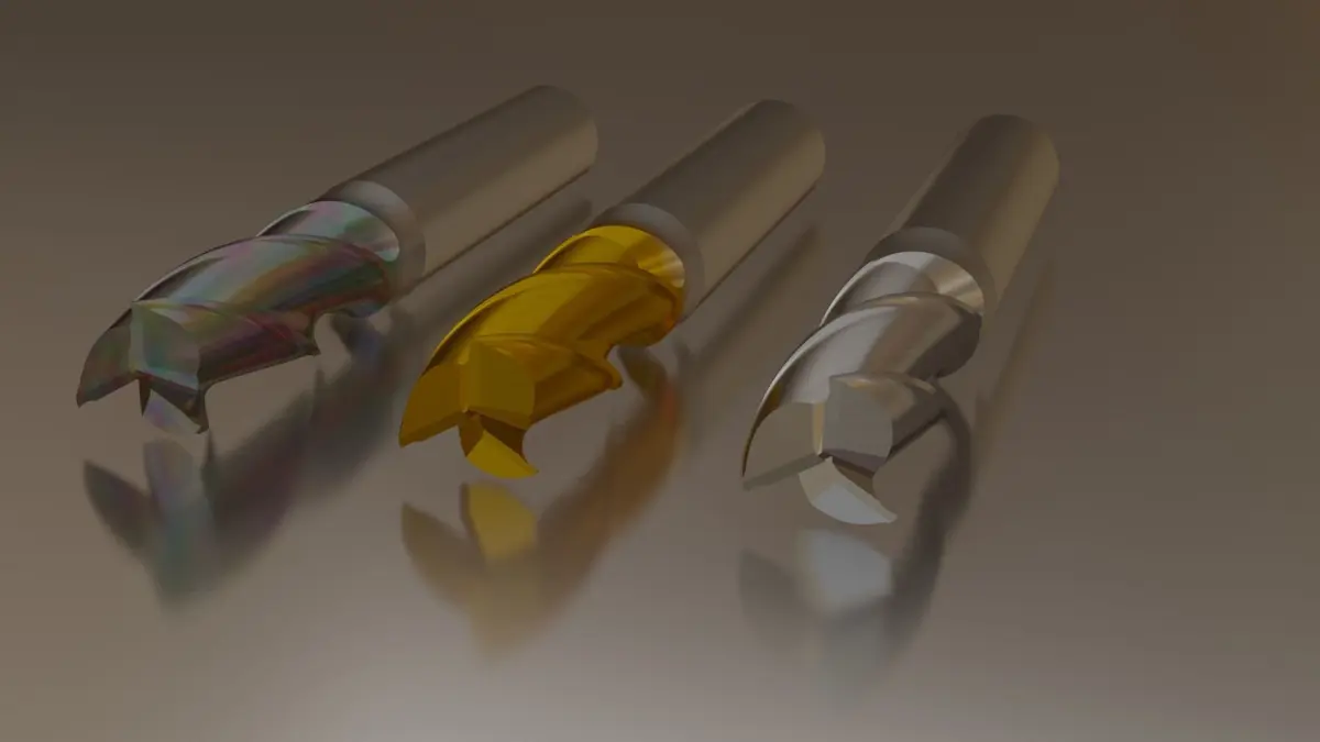 I have modelized with Blender 2.83 real end mill with 3 flutes. There is 3 model, one without coating, one with TiN coating and one with DLC coating.