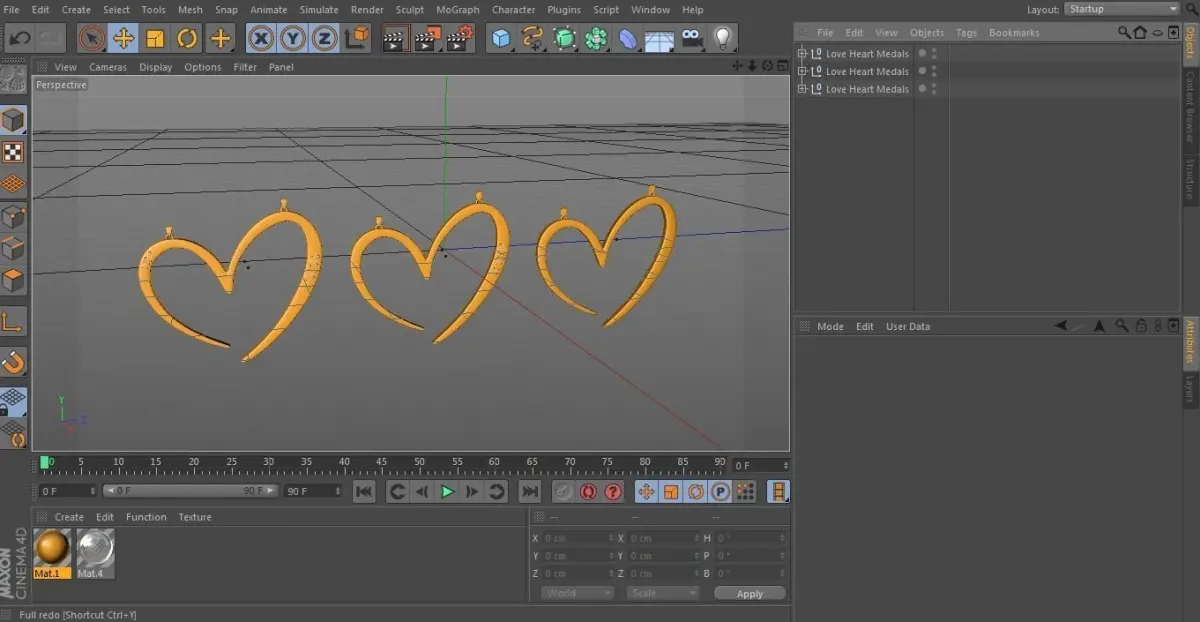 3 Love Heart Medals 3D model