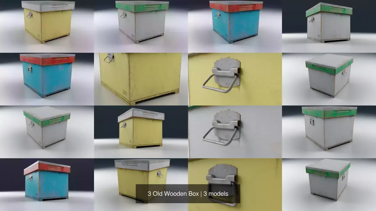 Old Wooden Box Yellow, Old Wooden Box White and Old Wooden Box Blue Autodesk Maya Version 20193D model, PBR 4K Texcture and Render with Autodesk Maya V-Ray Version NEXT 2019