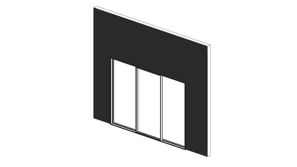 This is a wall based 3 Panel Sliding Balcony Aluminium External Door revit family, with the only the middle panel sliding and the other 3 side panels fixed. Fully Parametric.Middle panel slides open ( one direction - but model can be flipped ) with parameter to control the graphical represantation. User can create family types controling the rough width and height, glass thickness, panel offset from wall, guide frame and panel frame width as well as the materials.Panels net width and height are calculated automatically from rough width and height and the frame width parameters.Panels frame depth also is calculated automatically from the glass thickness parameter.Bottom guide frame is embedded into the floor.