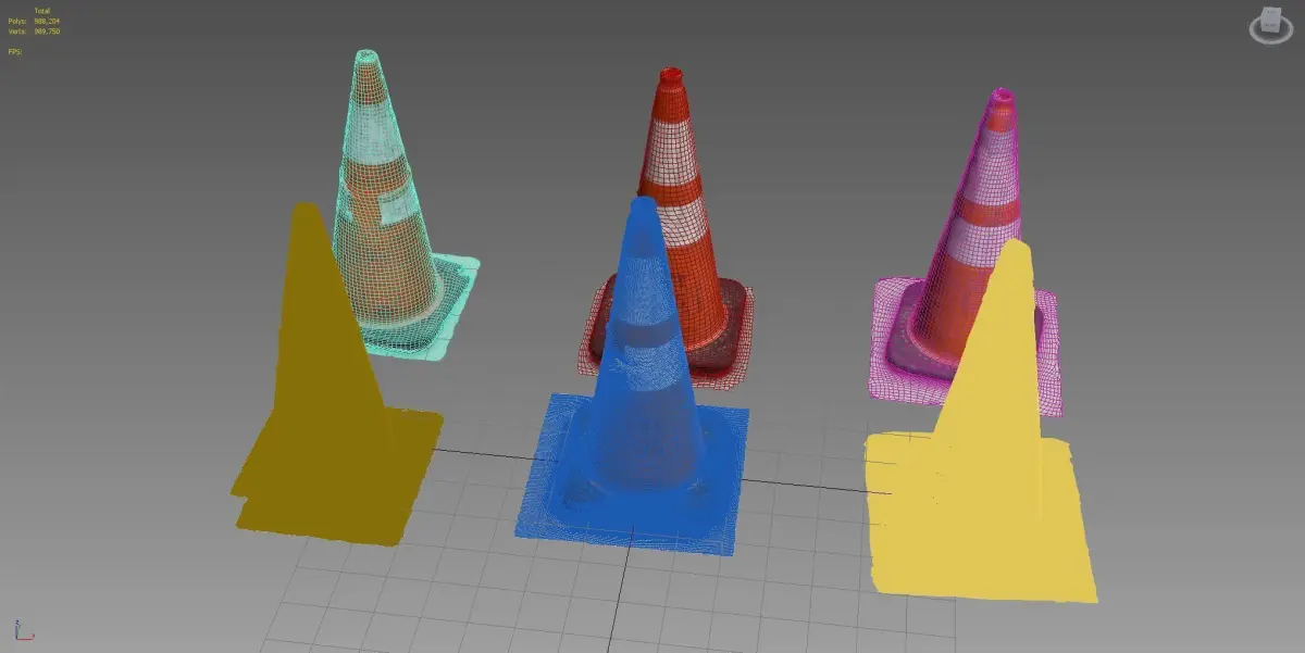 [GEOMETRY] Cone 1 - Low/High - Polygons: 7,719 / 493,487 - Vertices: 7,719 / 494,149Cone 2 - Low/High - Polygons: 4,728 / 336,655 - Vertices: 4,783 / 337,193Cone 3 - Low/High - Polygons: 6,184 / 395,487 - Vertices: 6,230 / 395,921