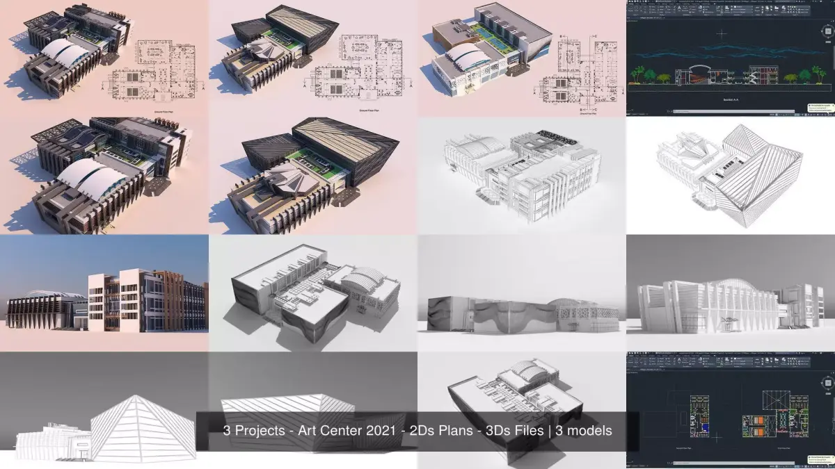Architecture Art Center Project 2021 - 3 Designs - 2Ds Plans Files - 3Ds Max Files