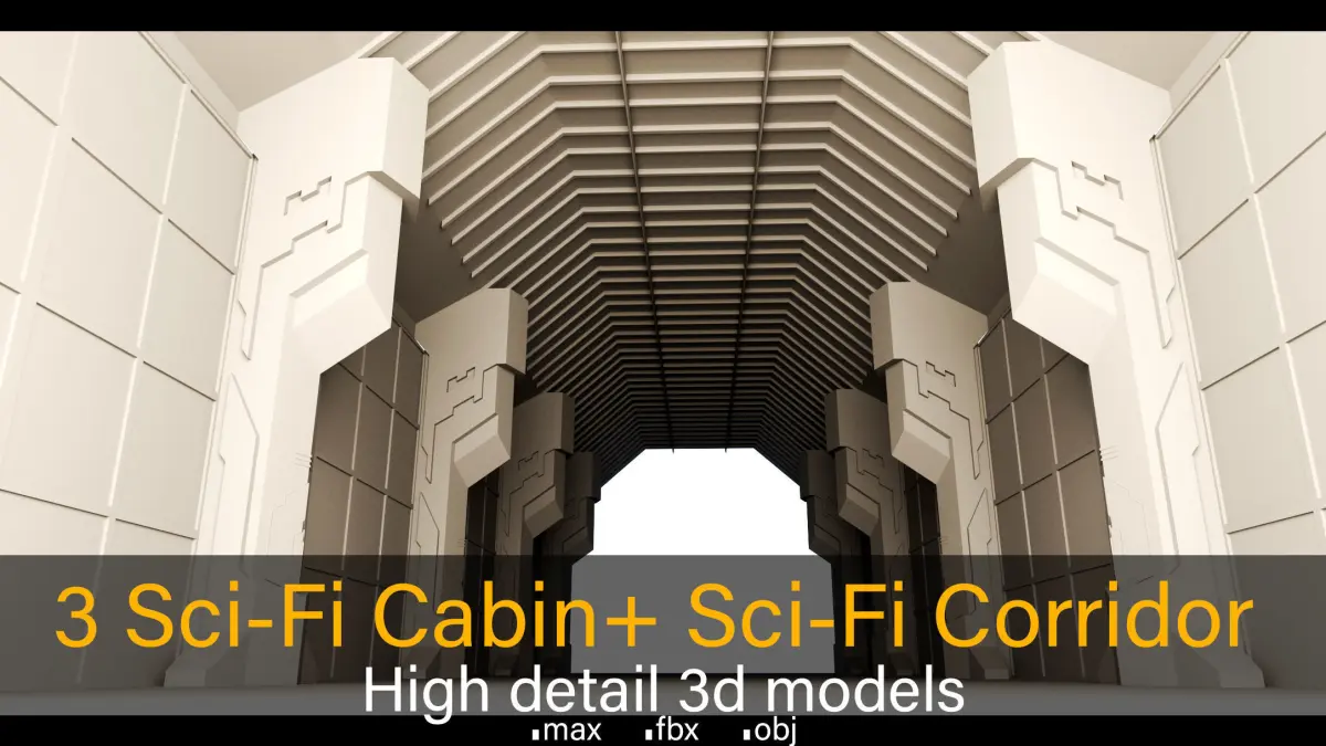 This product includes 3 Sci-Fi Cabins & A Corridor- High detail 3d models in 3 formats