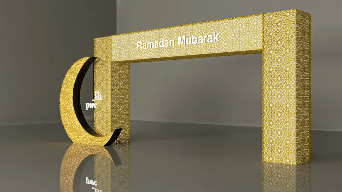 Three designs for the stage and one Islamic gate and mockup file with settings and the same quality as in the pictures easy to modifier .design what you can ajdust and use for your required design. I created this with 3ds max 2022 and all the rendering settings are included. adjust your size and render. Branding you will have to and make it more beasutiful.