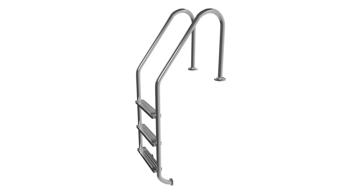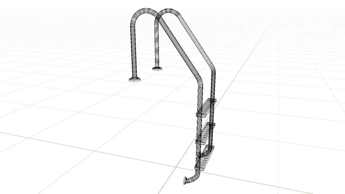 The Model Consists of 3 steps swimming pool ladder. The model has two handle with 40mm pipe and 3 steps placed.The pool ladder pipe is approx 40mm diameter. Height of ladder whole approx 1580mm. Step to step distance approx 260mm. Handle to handle approx 500mm. side width approx 618mm.