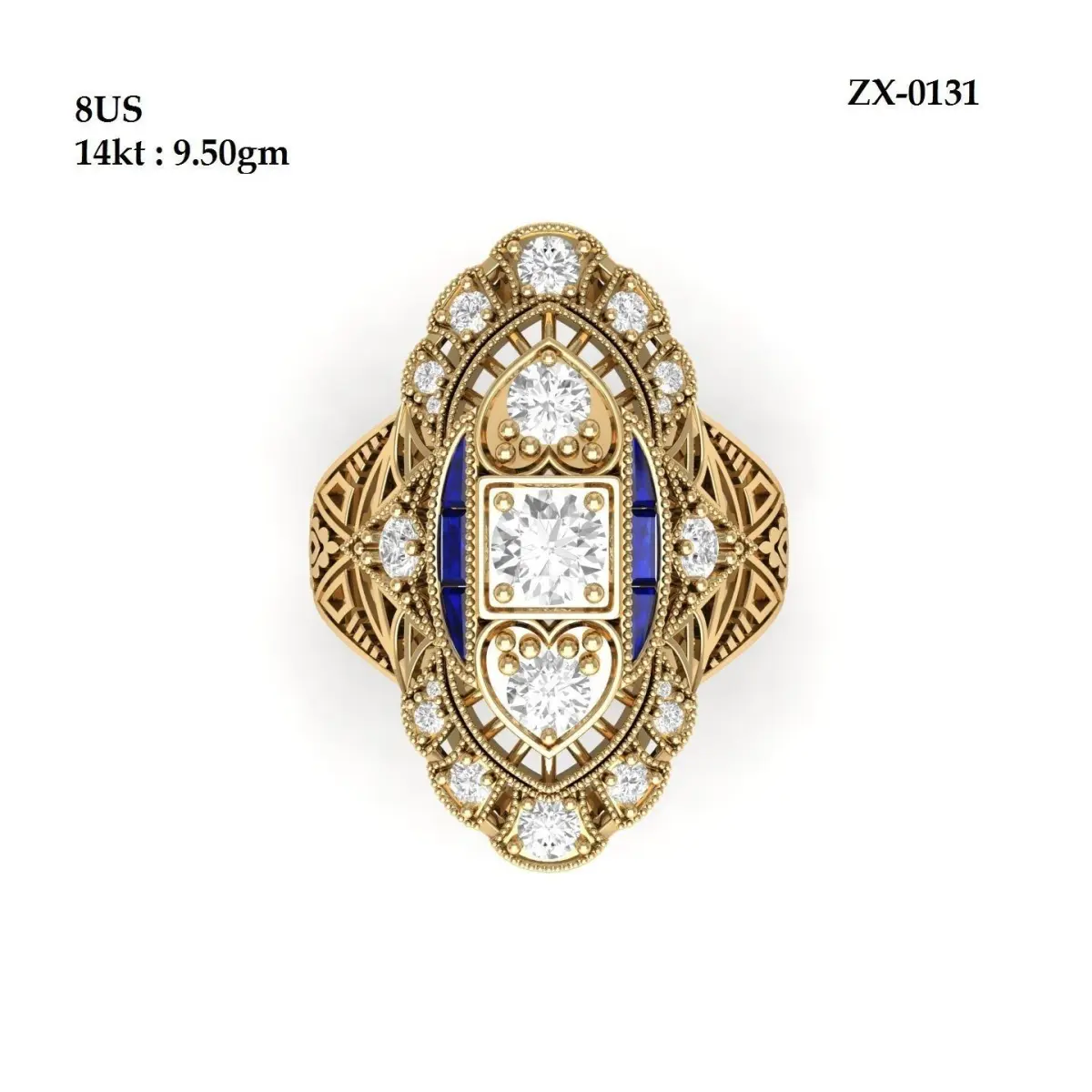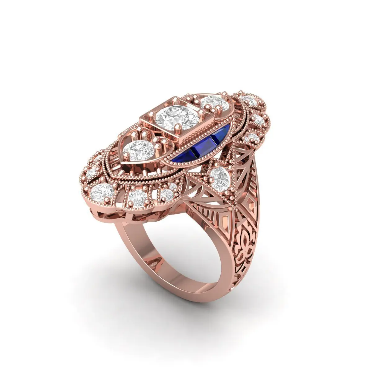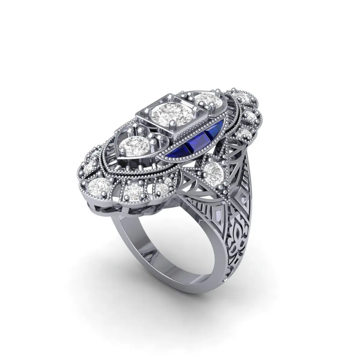 Home Catalog 3 Stone Art Deco Ring 3D print model