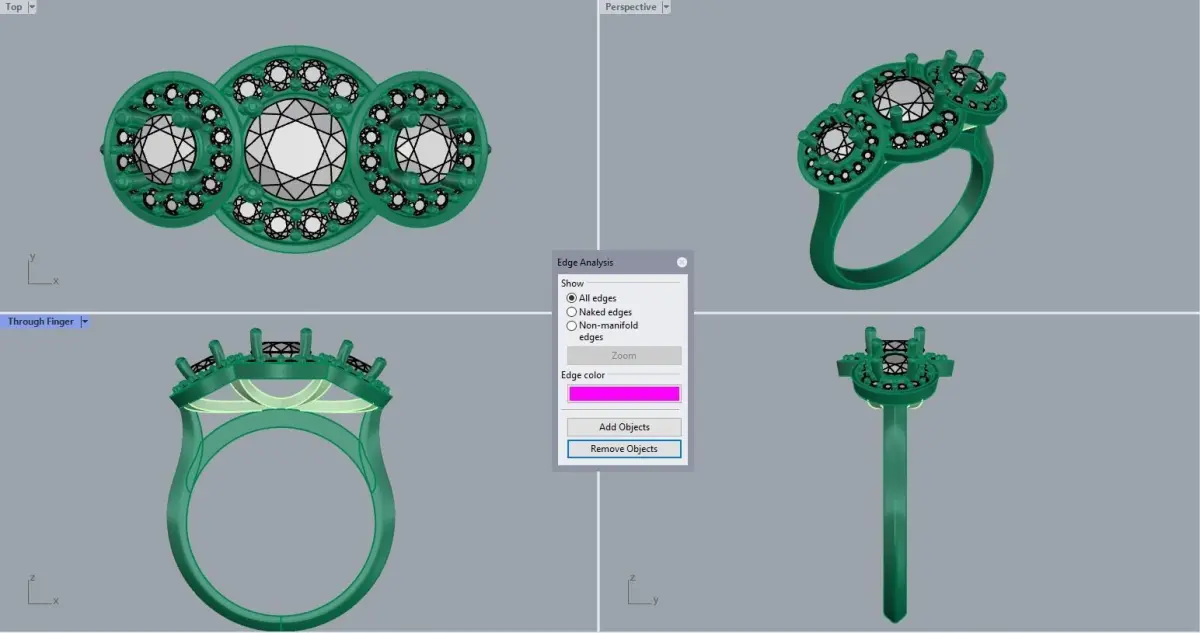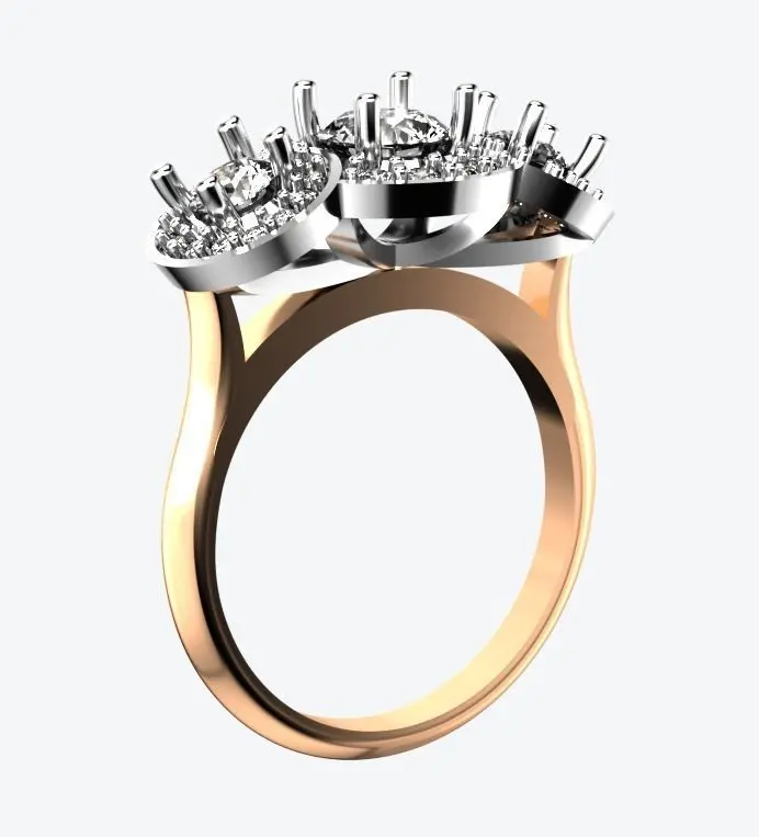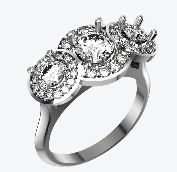 3 Stone Multi Halo Designer Ring 3D print model